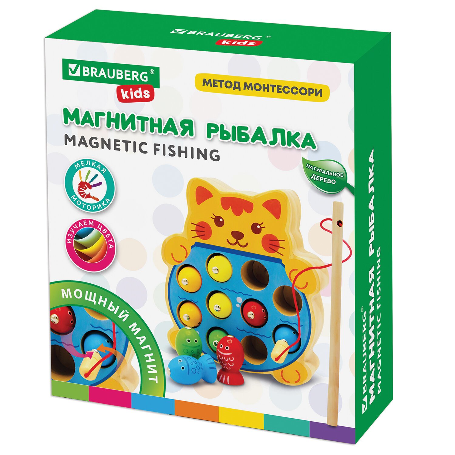 Сортер-рыбалка магнитный деревянный развивающий "Кот", BRAUBERG KIDS, 665246
