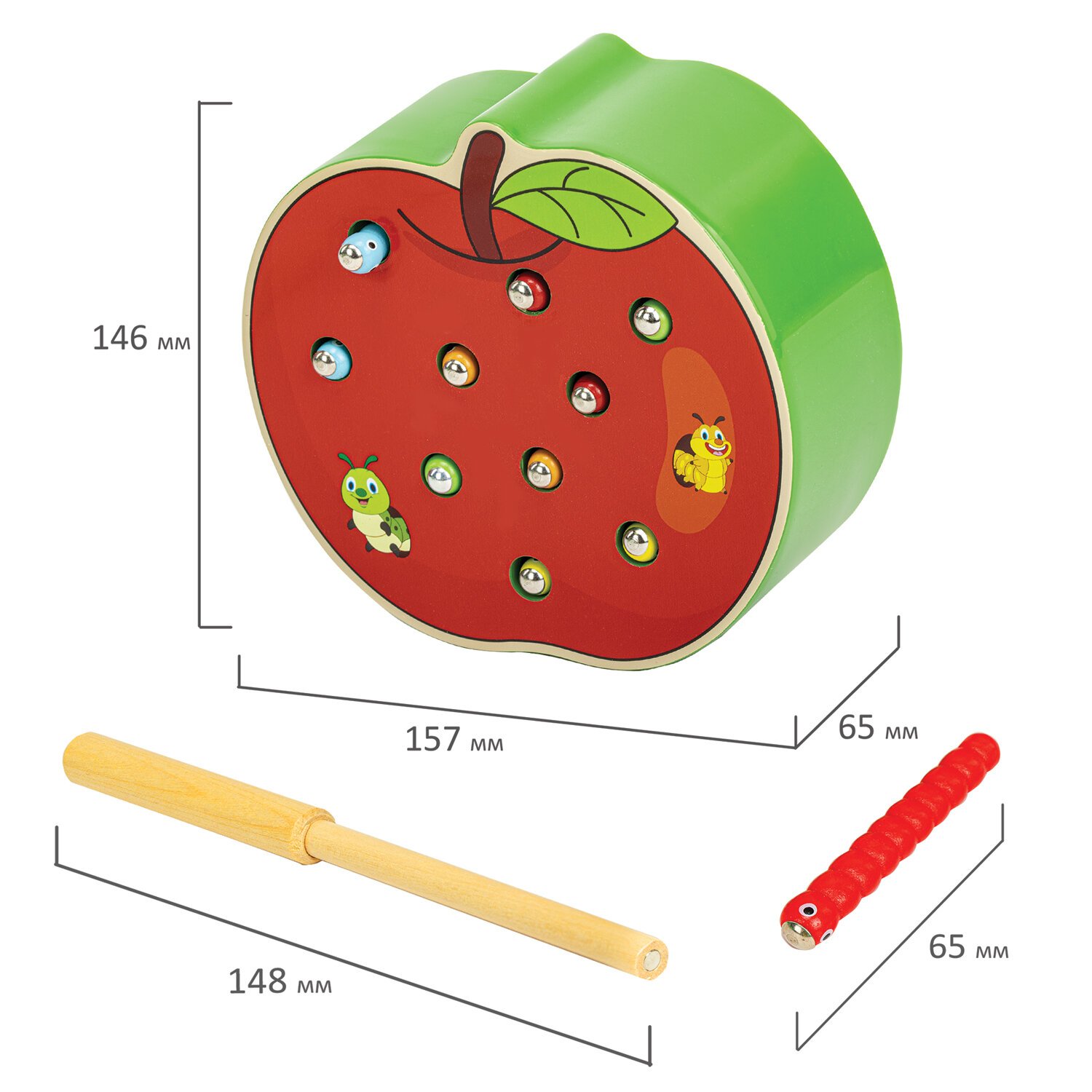 Сортер-рыбалка магнитный деревянный развивающий "Яблоко", BRAUBERG KIDS, 665244
