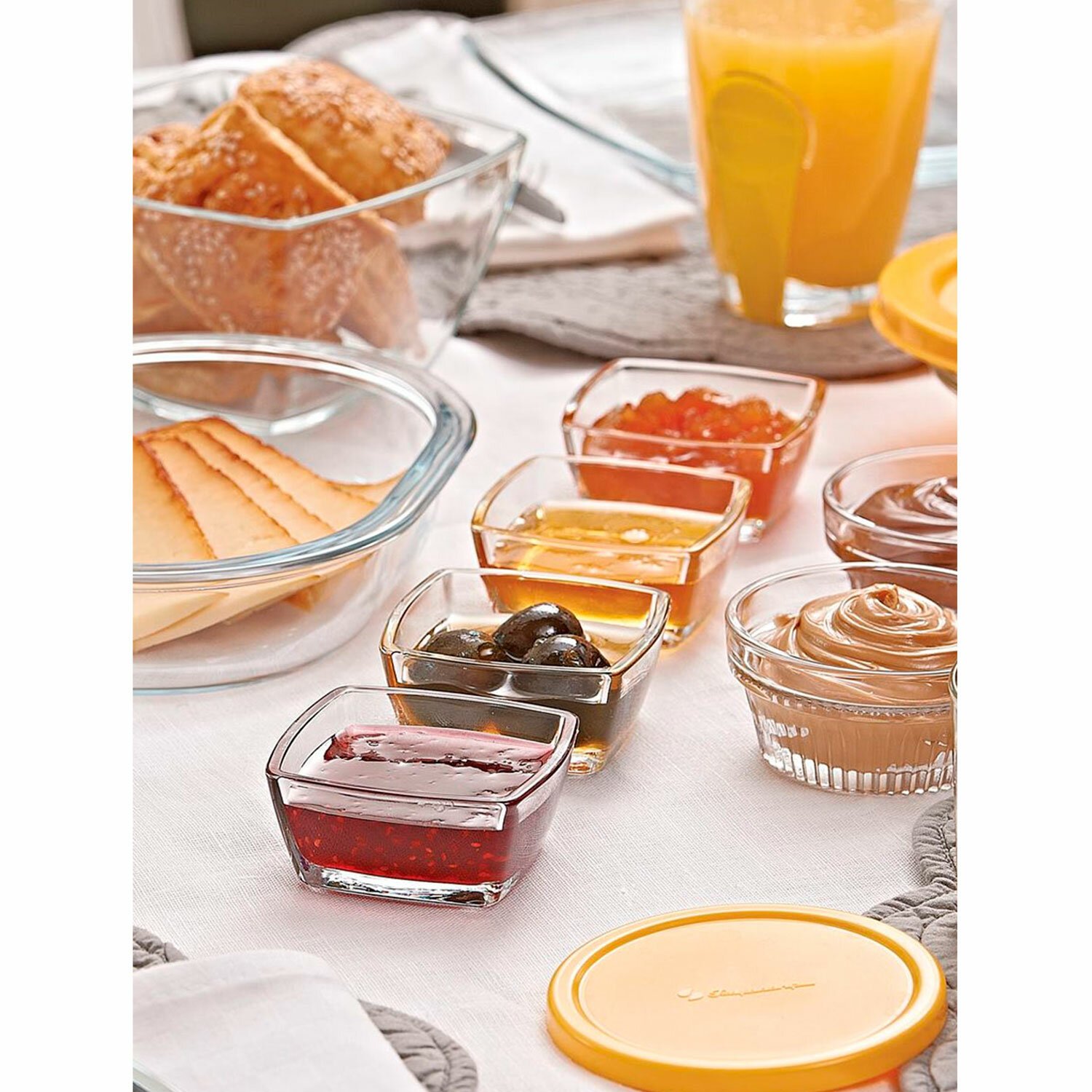 Соусники изготовлены из силикатного стекла, состоящего из смеси натрия и кальция, имеют квадратную форму без декора в современном азиатском стиле. Применяются в любых заведениях общепита. Оптимальны для подачи соусов, холодных закусок, варенья, мороженого.