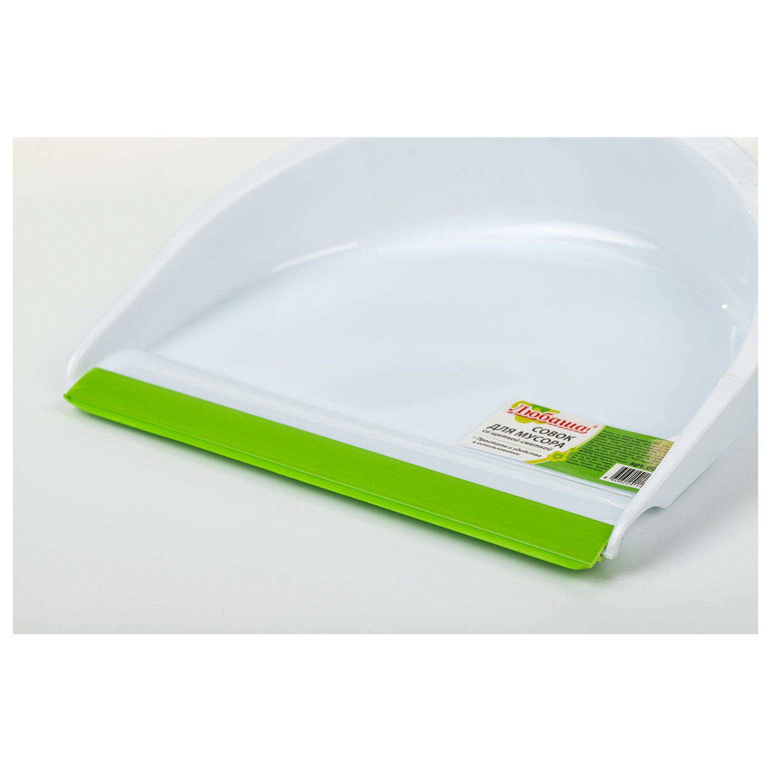 Совок для мусора + щетка, пластик, резиновая кромка, зелено-белый, ЛЮБАША, 603615