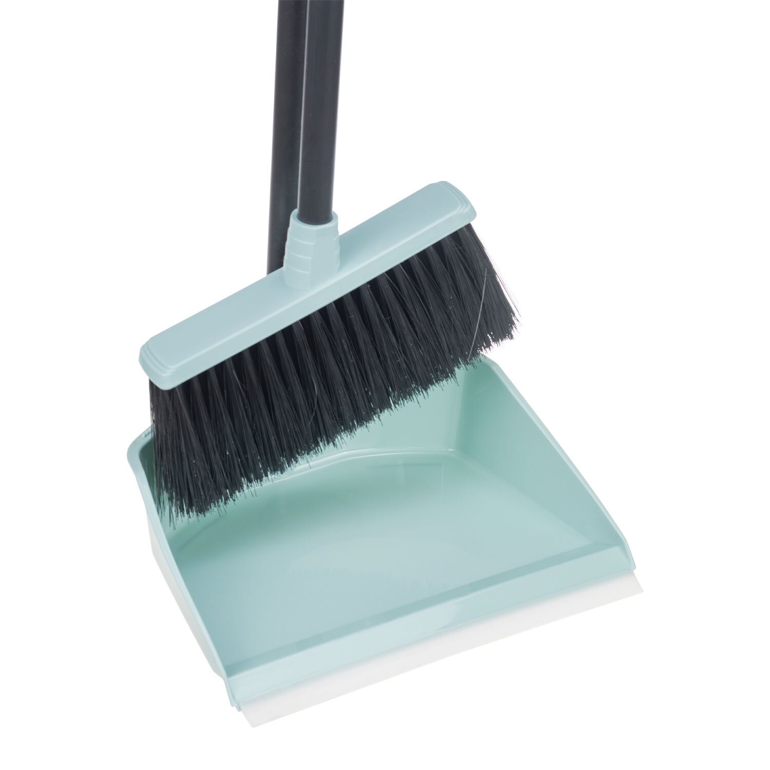 Совок для мусора + щетка, рукоятки 80 см с резьбой, пластик, зелено-белый, "ЛЕНИВКА", ЛЮБАША, 603616