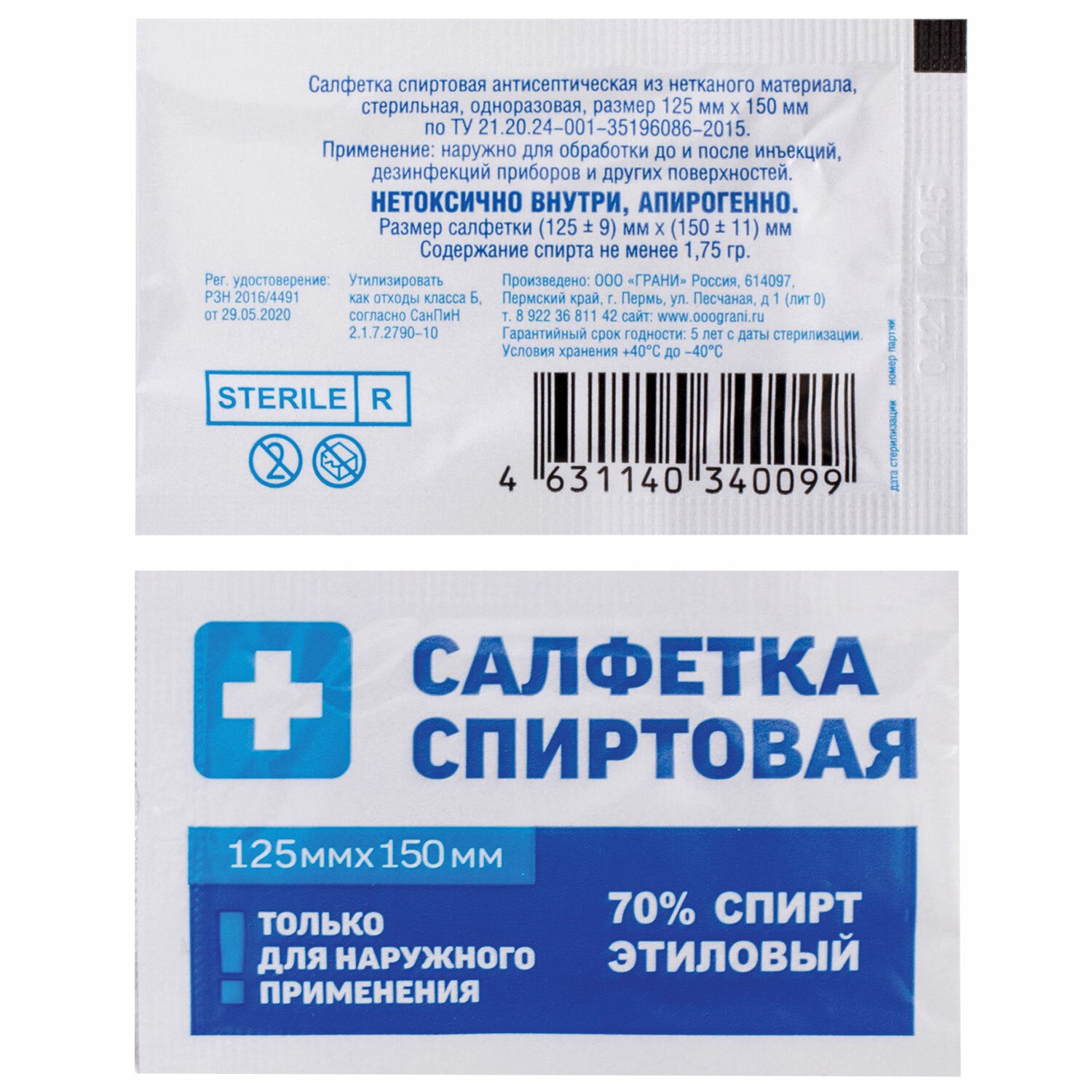 Спиртовые салфетки антисептические 125х150 мм КОМПЛЕКТ 250 шт., ГРАНИ, короб