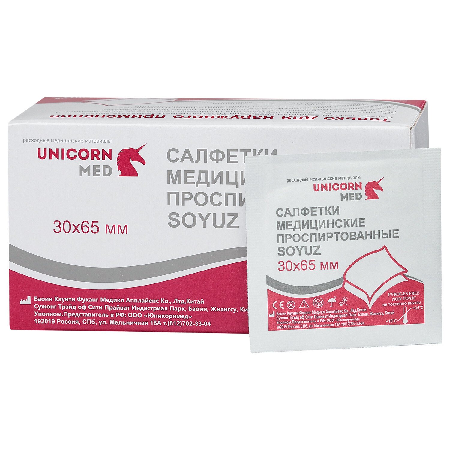 Спиртовые салфетки антисептические 30x65мм КОМПЛЕКТ 100шт., SOYUZ, короб, СП11-11