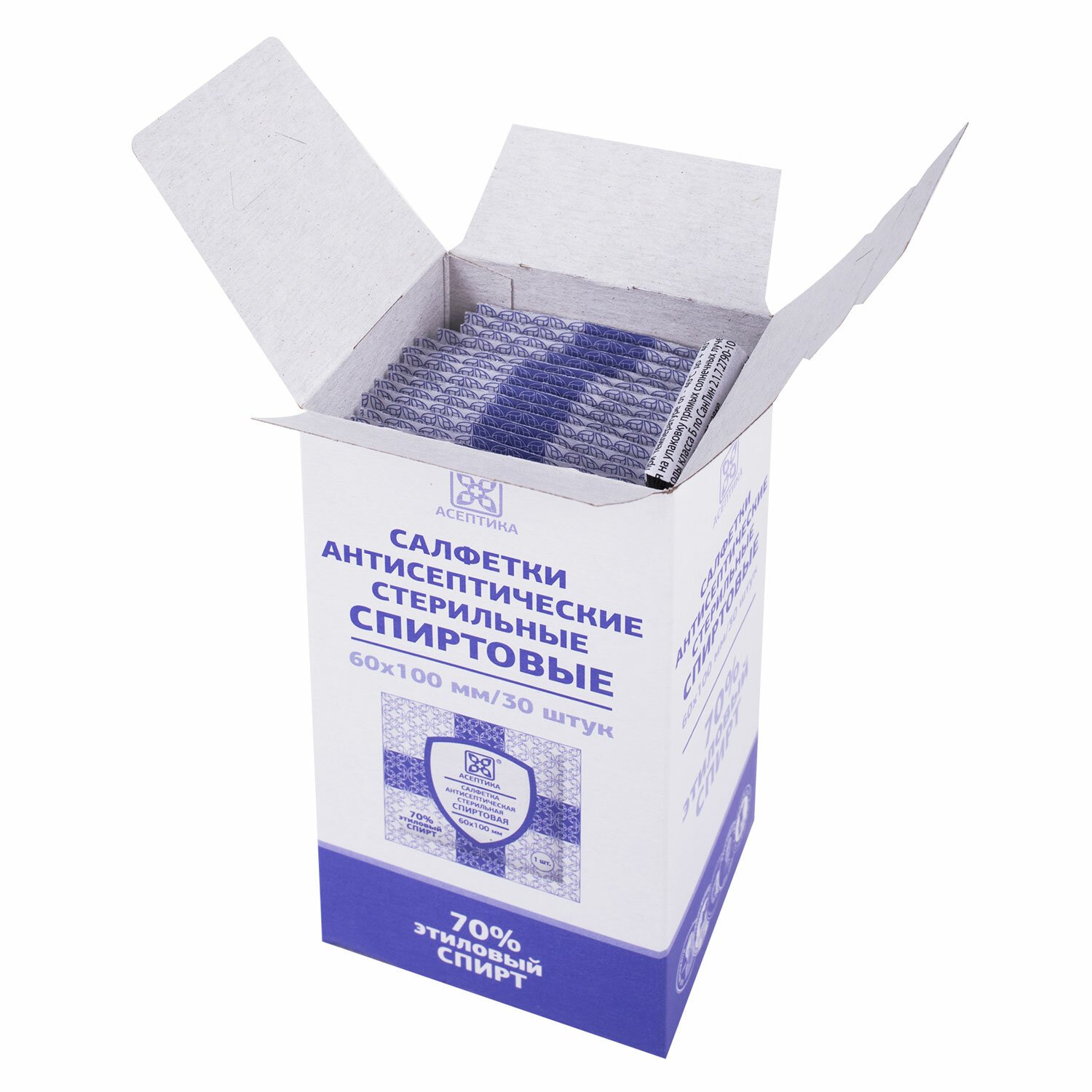 Спиртовые салфетки антисептические 60х100 мм КОМПЛЕКТ 30 шт., АСЕПТИКА, короб, ЦБ03230-МО05