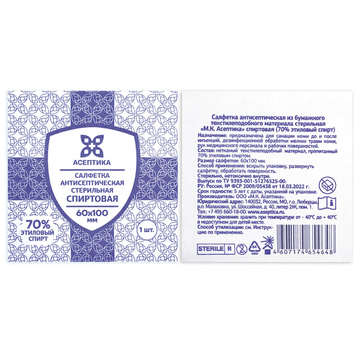Спиртовые салфетки антисептические 60х100 мм КОМПЛЕКТ 100 шт., АСЕПТИКА, короб, ЦБ03233-МО05
