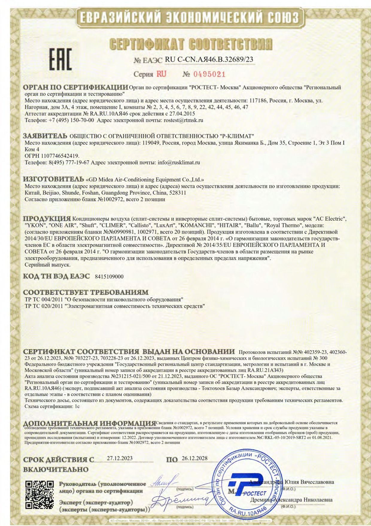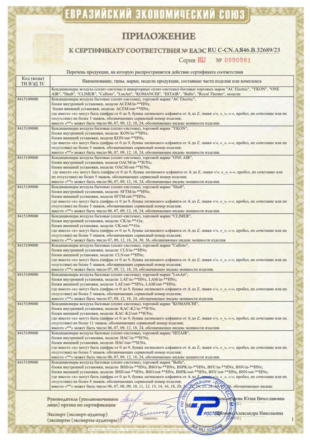 | Потребляемая мощность, охлаждение | 1.643 |