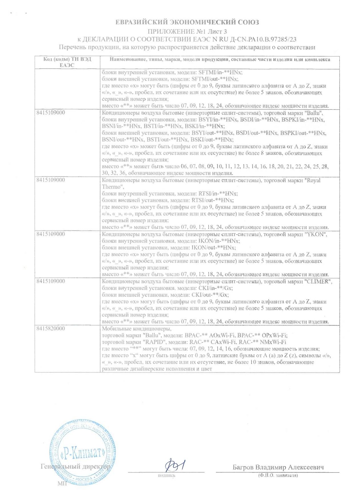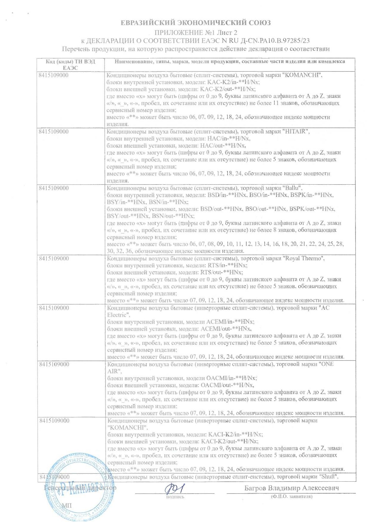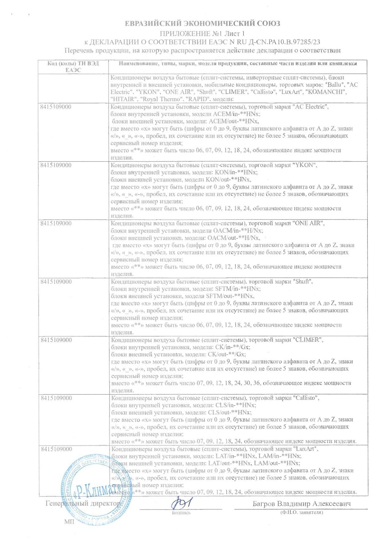 | Вес внутреннего блока | 12.1 |