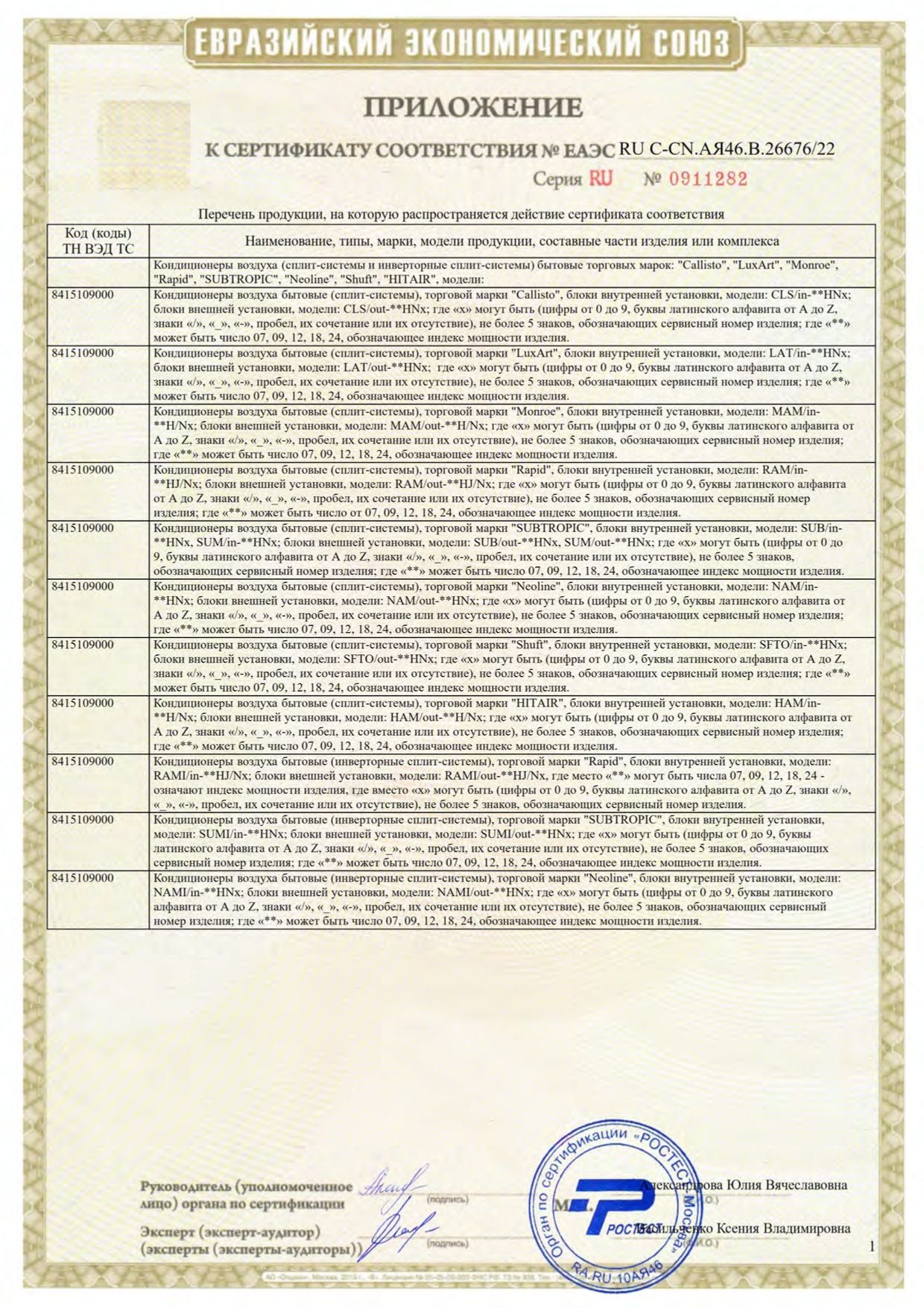 | Уровень шума внешнего блока | 54 |