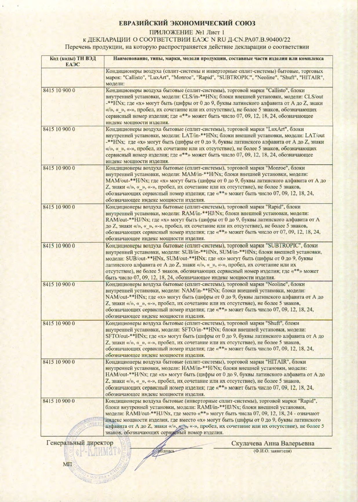 | Охлаждающая способность | 24000 |