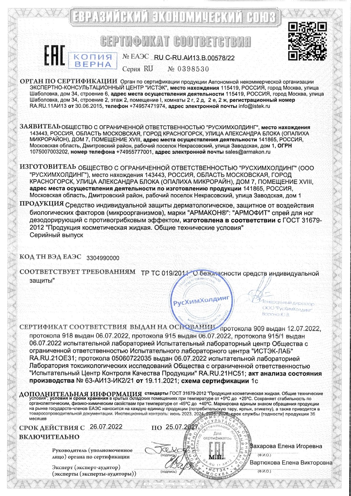 Спрей для ног, 100 мл, АРМАКОН "АРМОФИТ", дезодорирующий, с противогрибковым эффектом, 1178