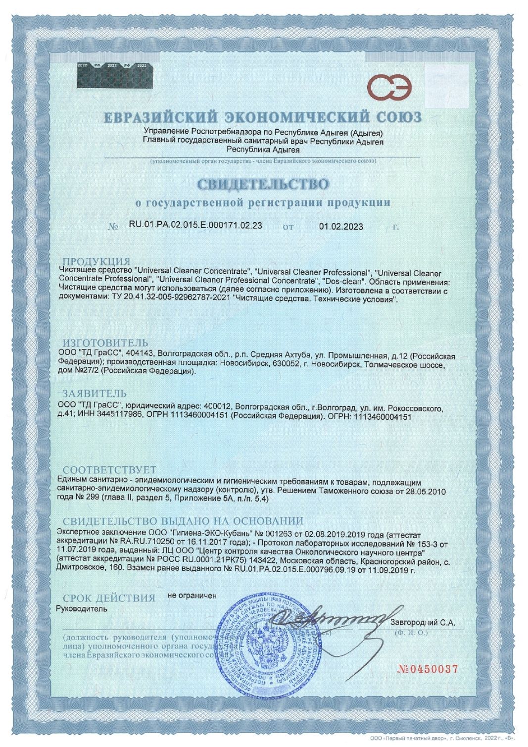 Универсальное чистящее средство широкого спектра действия GRASS "Universal Cleaner Professional"