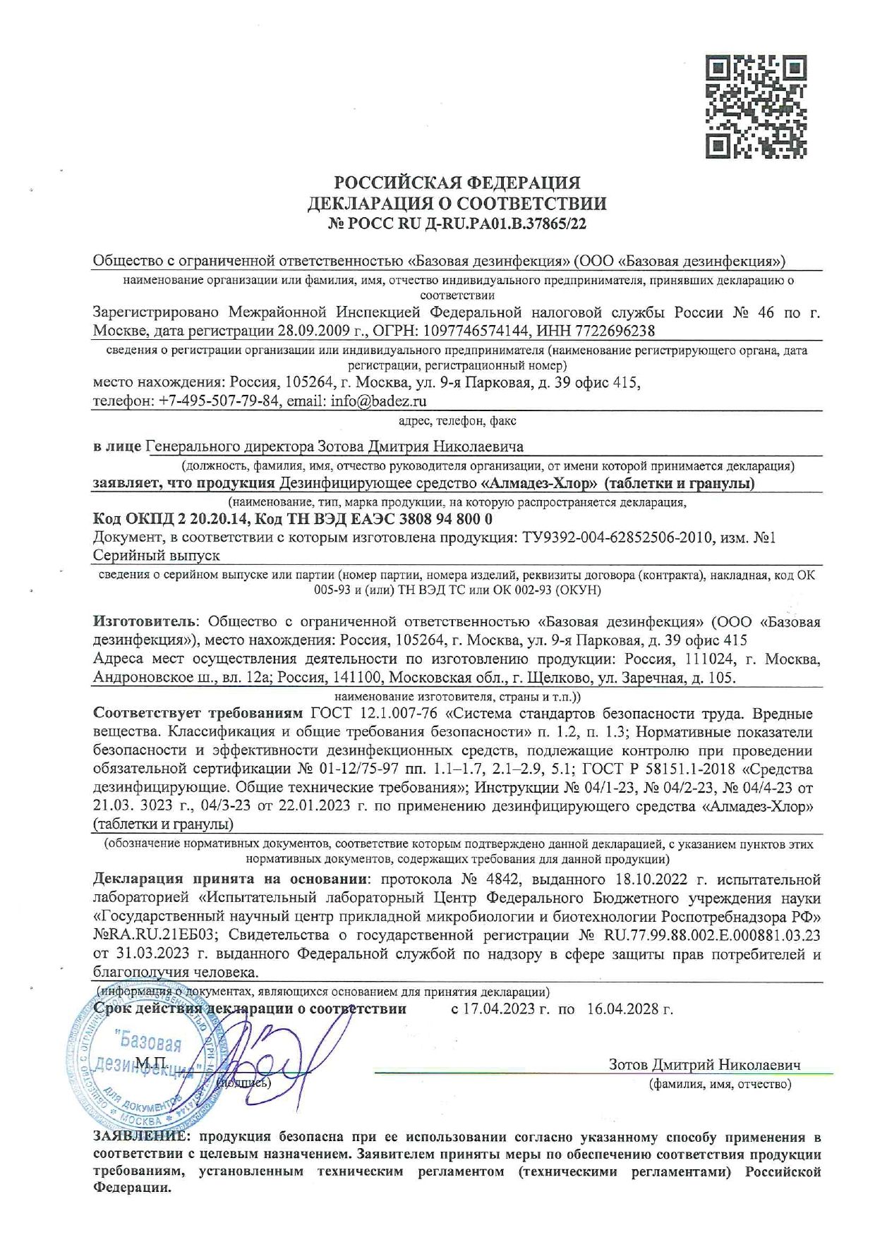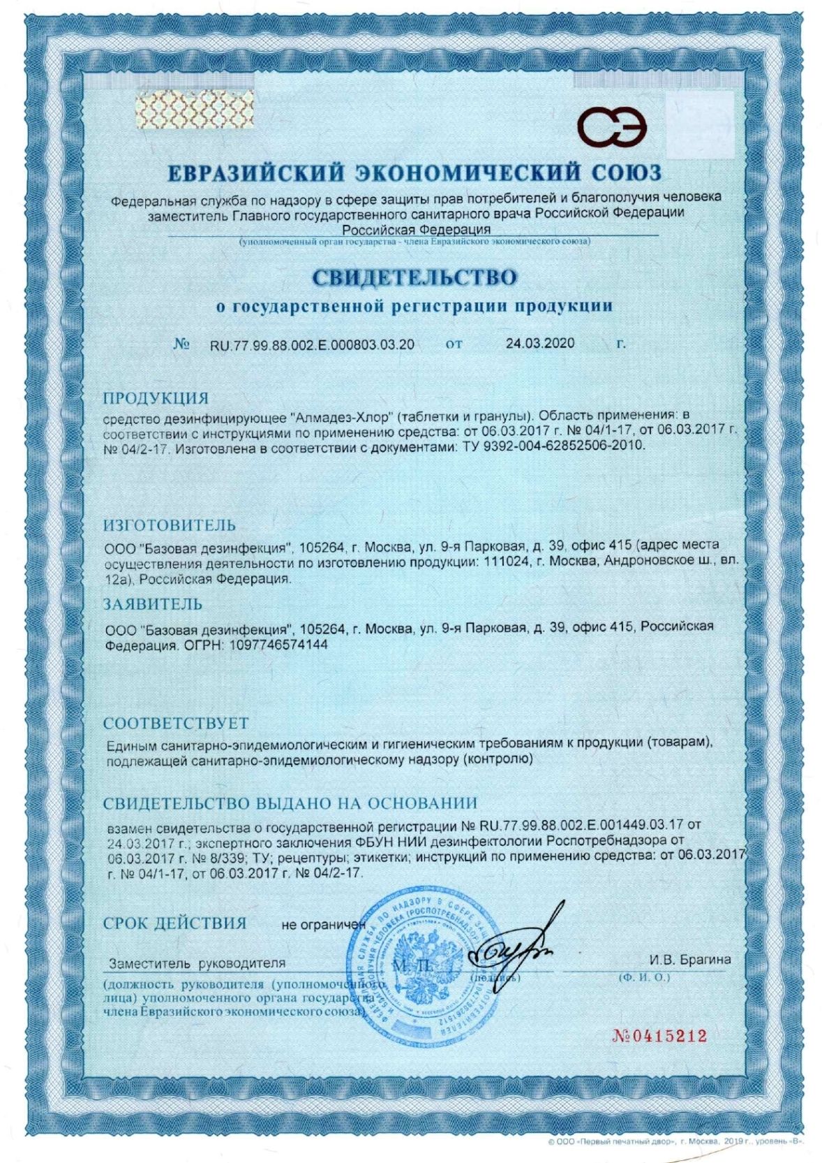 Срок годности средства – 6 лет в невскрытой упаковке изготовителя, рабочих растворов 5 суток (до использования).
