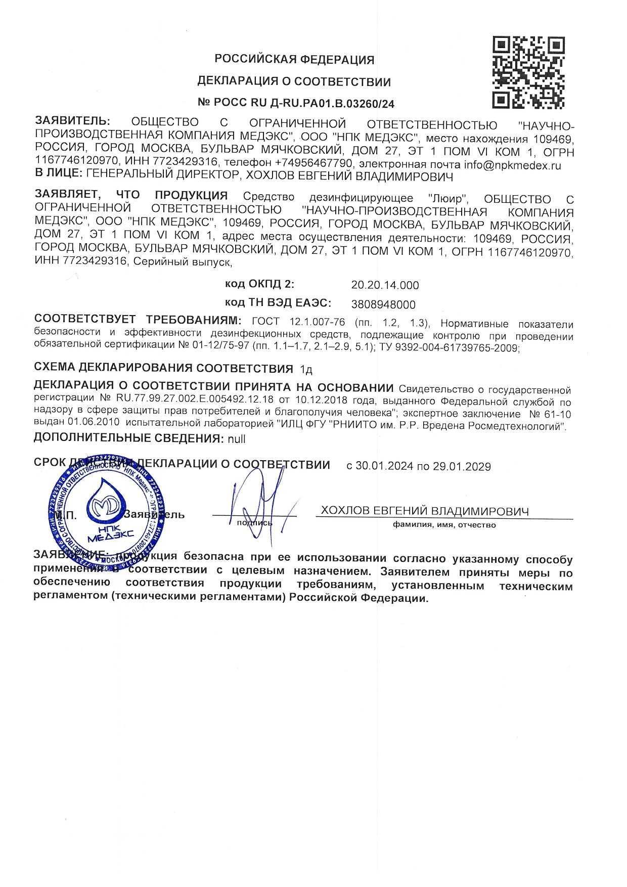 | Соответствует требованиям ГОСТа | ГОСТ 12.1.007-76 п.1.2, 1.3 |