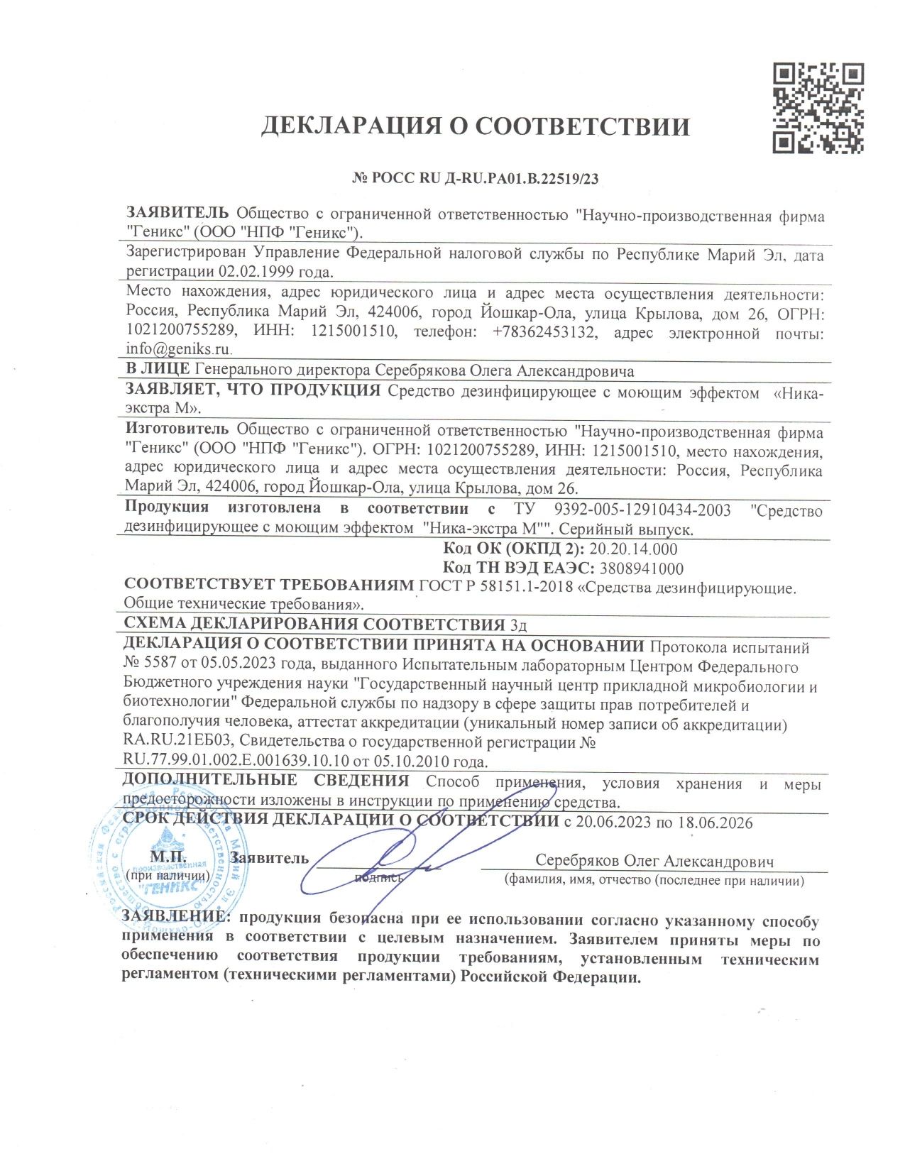 • Средство дезинфицирующее 1 л, НИКА "ЭКСТРА М"