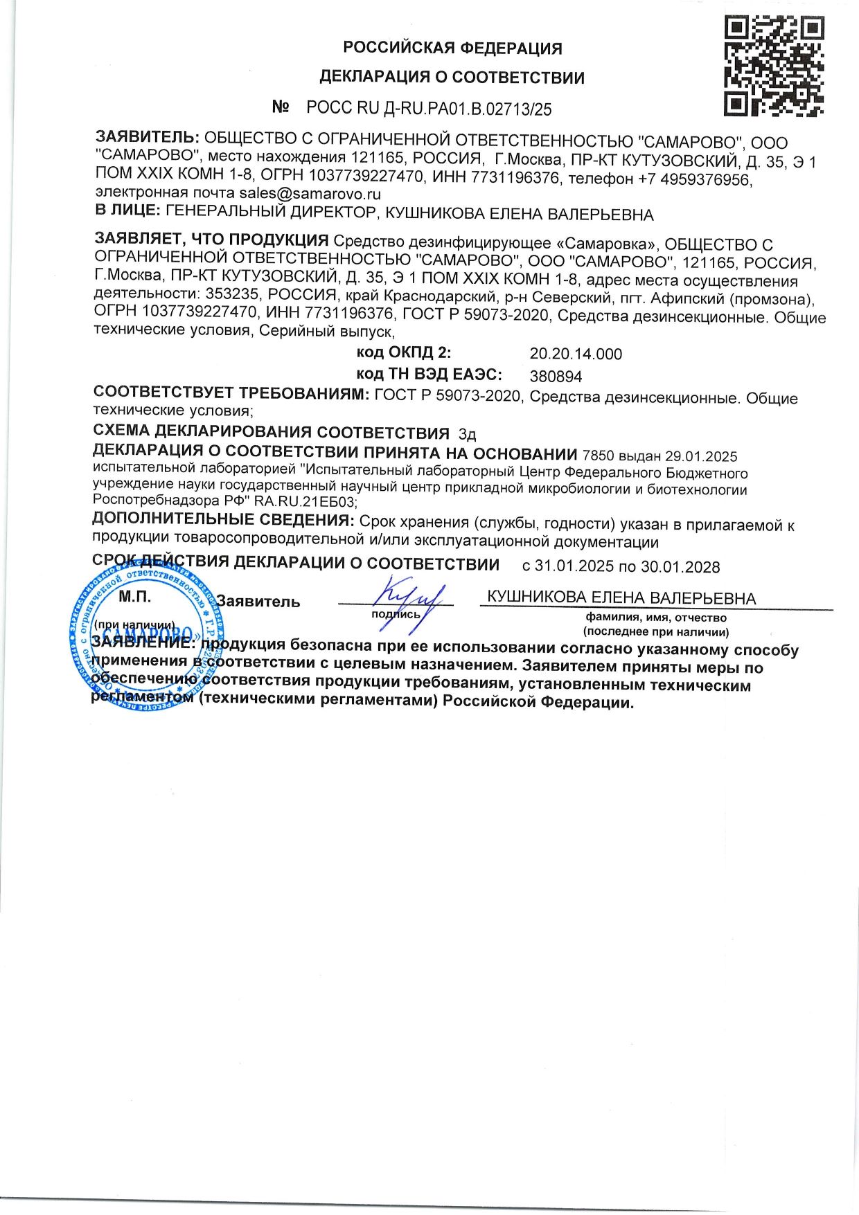 Средство дезинфицирующее 1 л, САМАРОВКА, концентрат