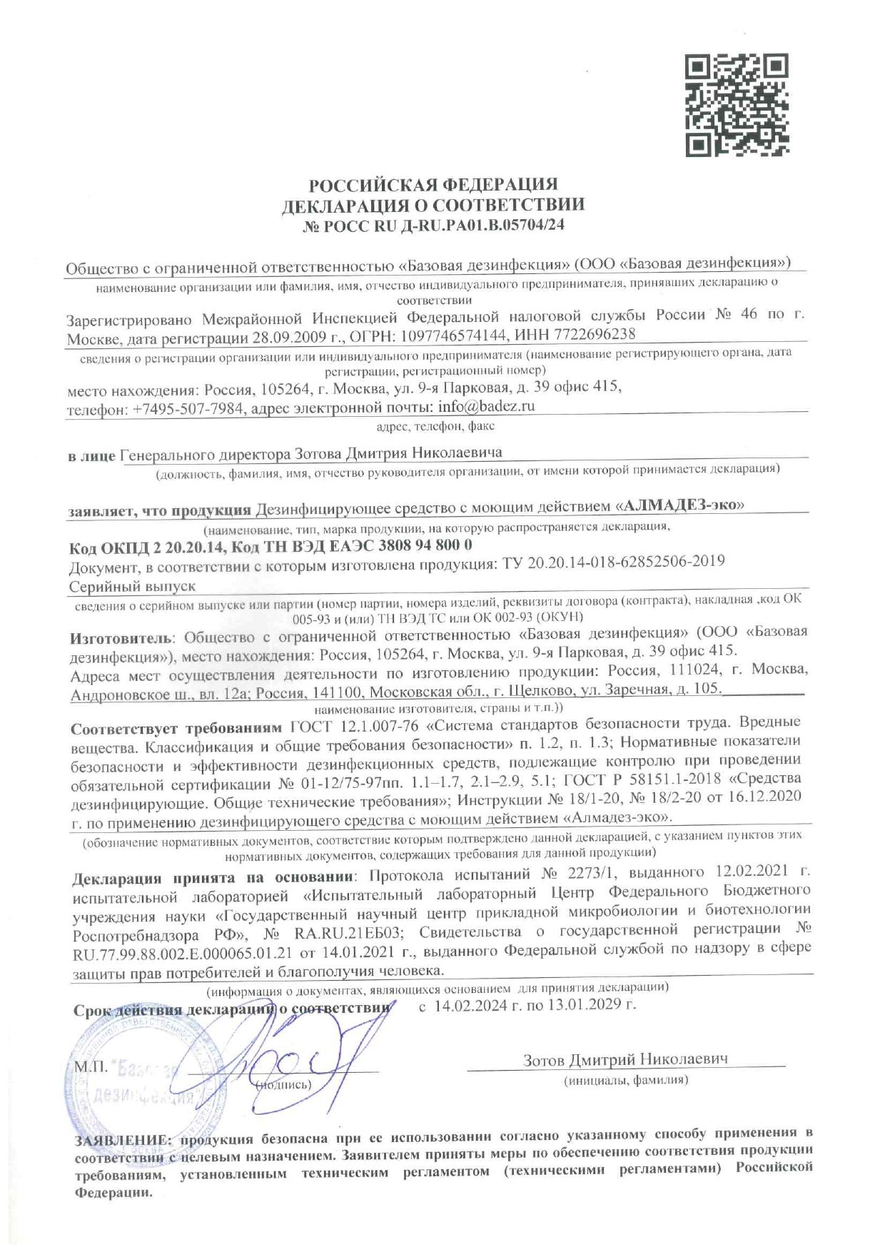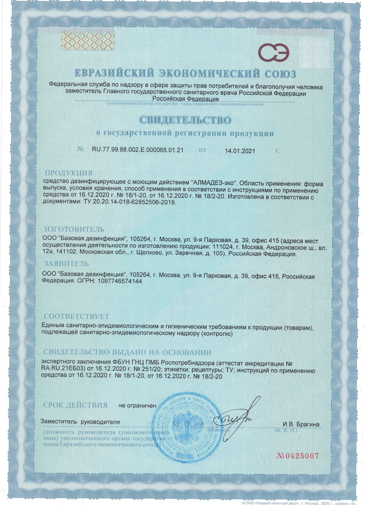 Дезинфицирующее средство АЛМАДЕЗ-ЭКО с моющим действием. Концентрат. Эффективно против коронавирусов.