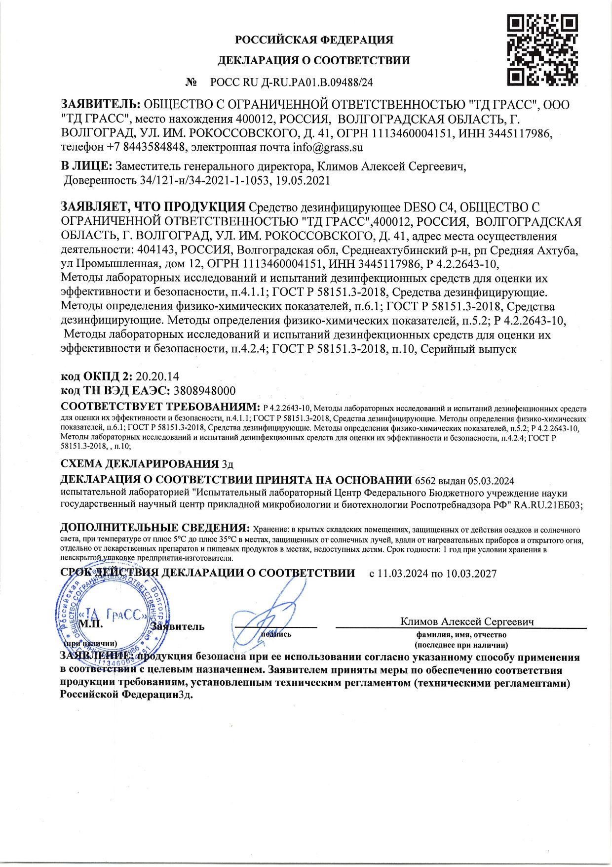 Средство дезинфицирующее для СИП, 20 л, GRASS DESO C4, 15% надуксусной кислоты, 550026
