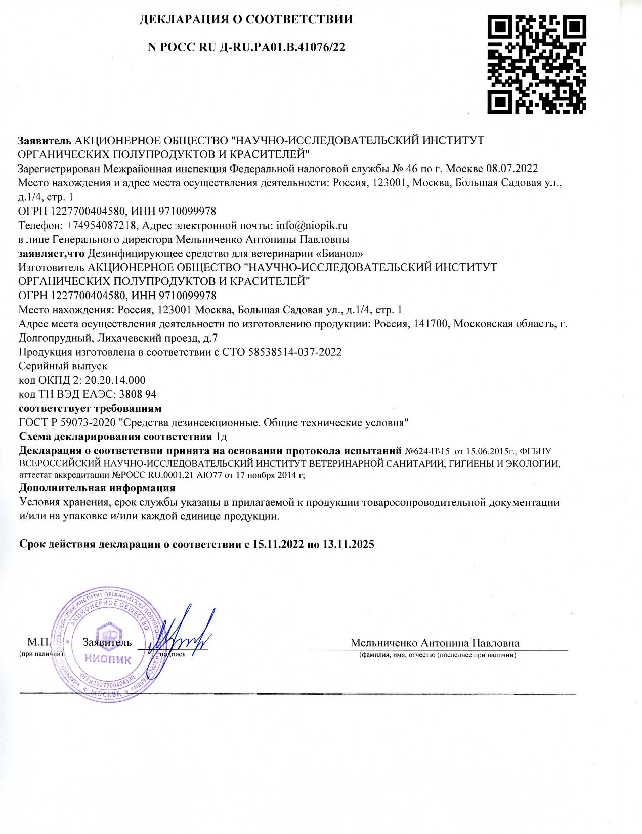 | Соответствует требованиям ГОСТа | ГОСТ 12.1.007-76 п.1.2, 1.3 |