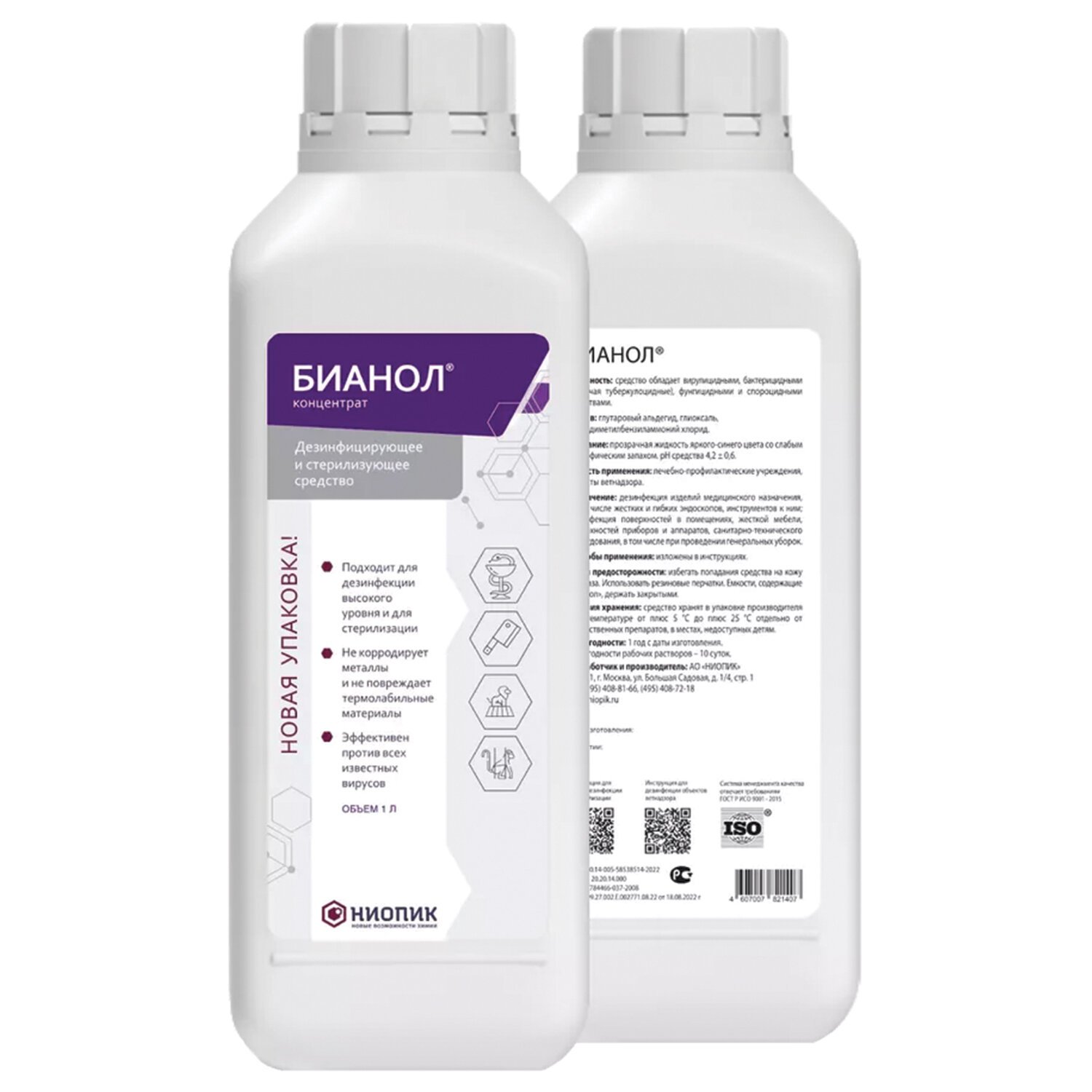 Средство дезинфицирующее для стерилизации и ДВУ 1 л, БИАНОЛ, концентрат, 100009