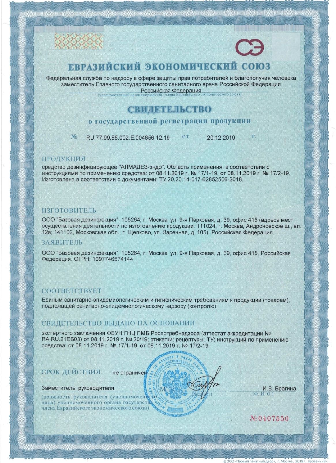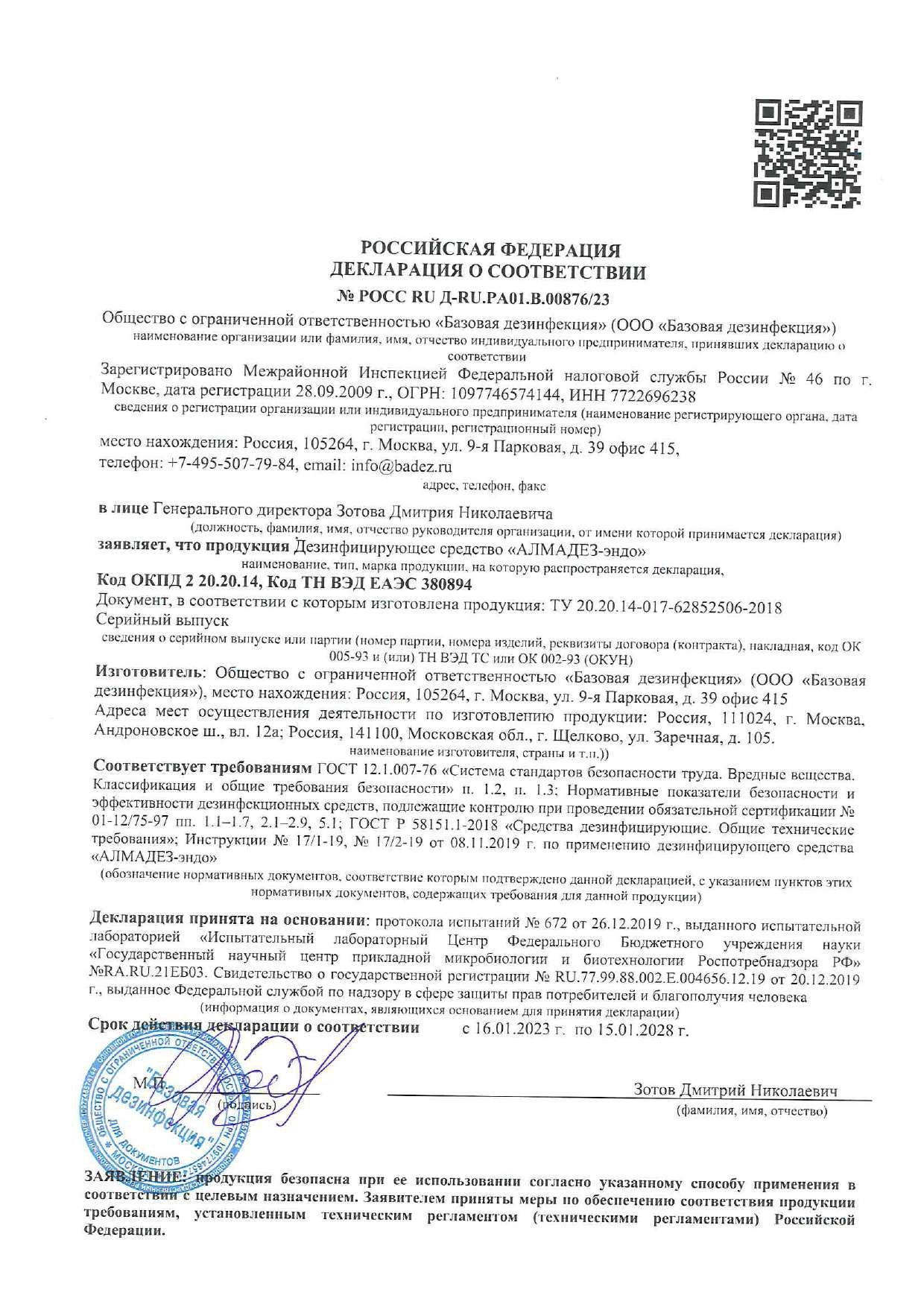 Средство АЛМАДЕЗ-ЭНДО для дезинфекции и стерилизации на основе перекиси водорода.