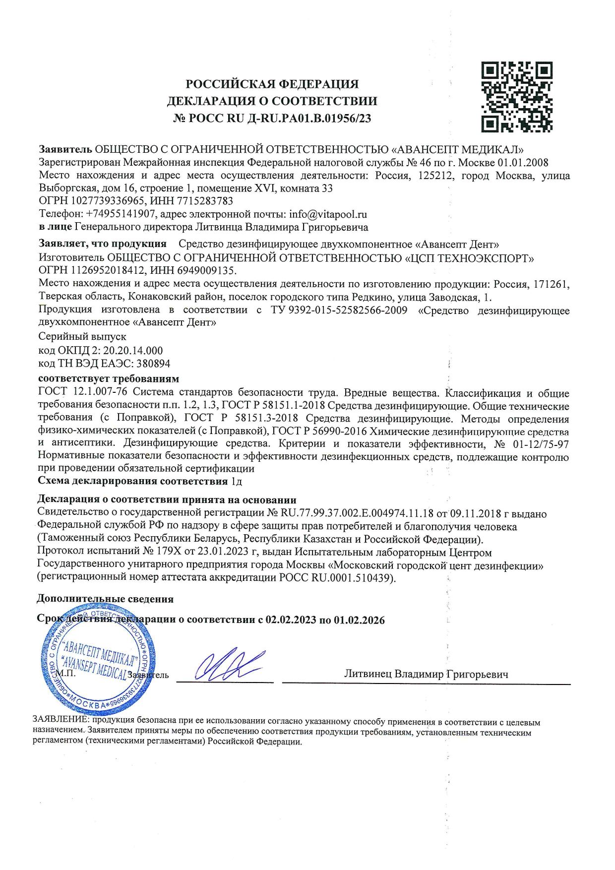 Средство дезинфицирующее для стоматологии 1 л, АВАНСЕПТ ДЕНТ