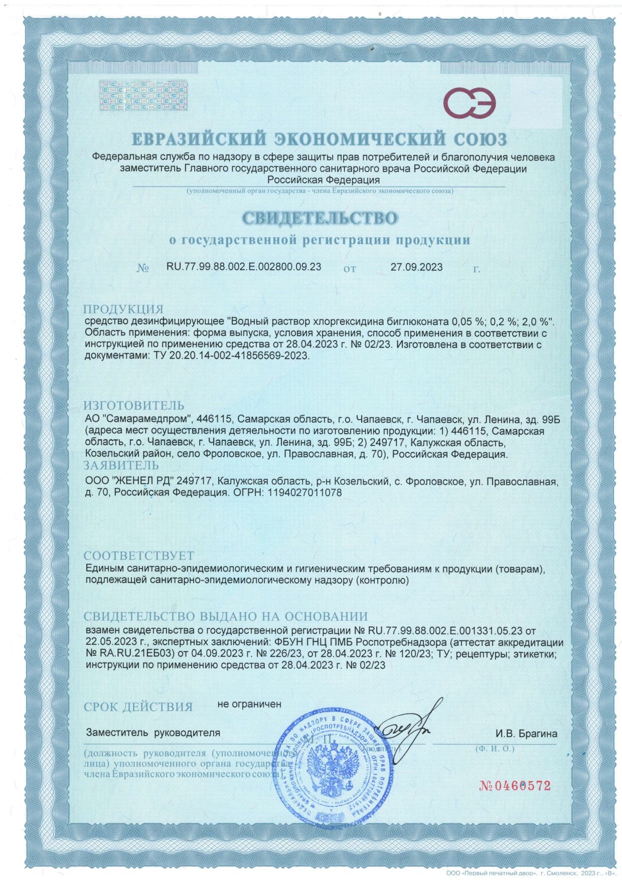 | Наличие СГР на дез. средство (кожный антисептик) | да |