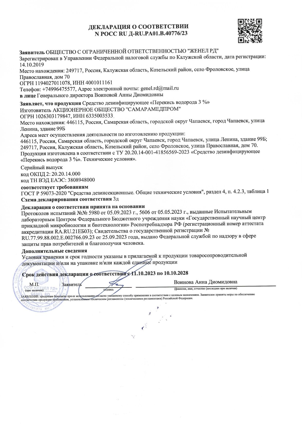 Средство дезинфицирующее Перекись водорода, 3%, канистра 5 л, Самарамедпром