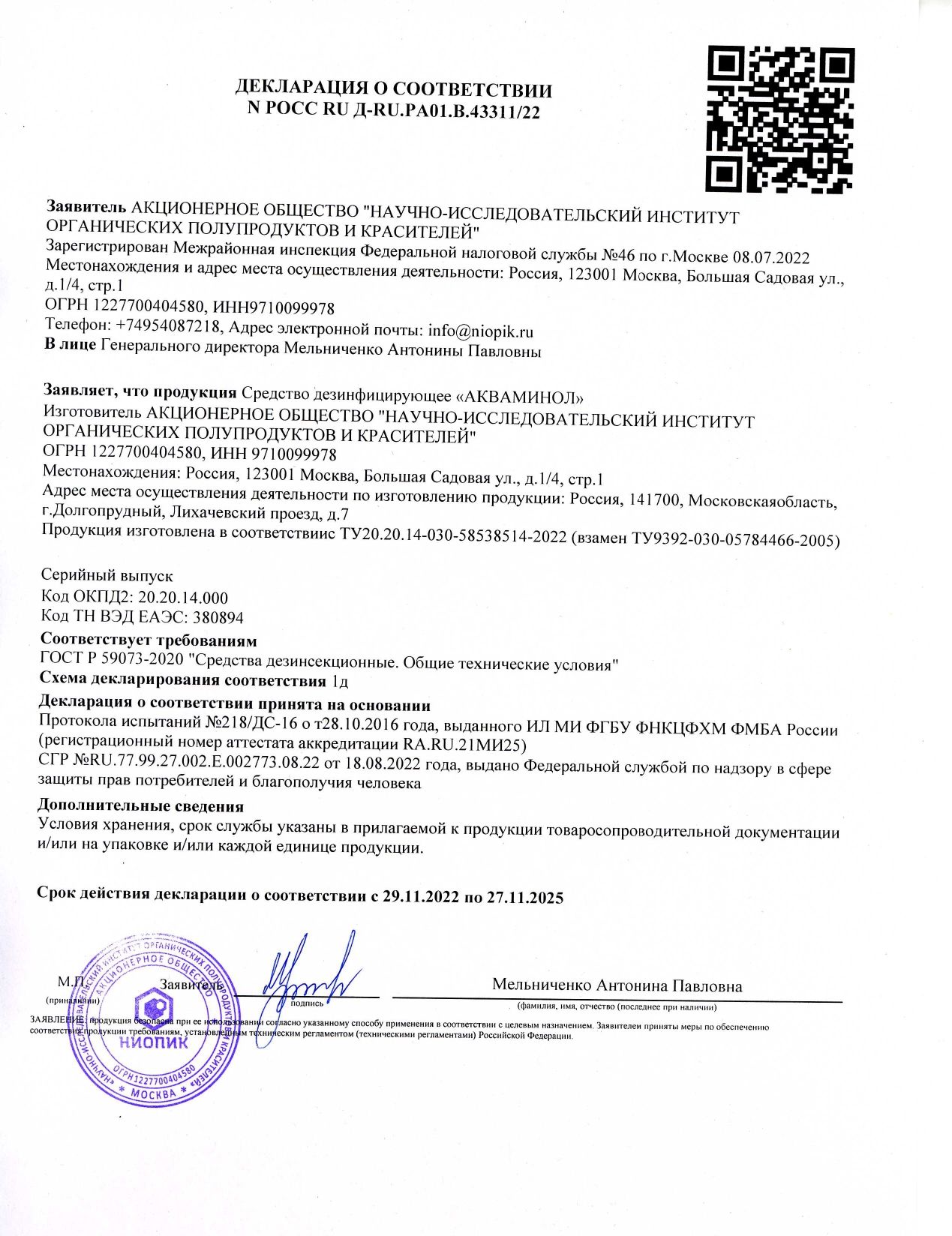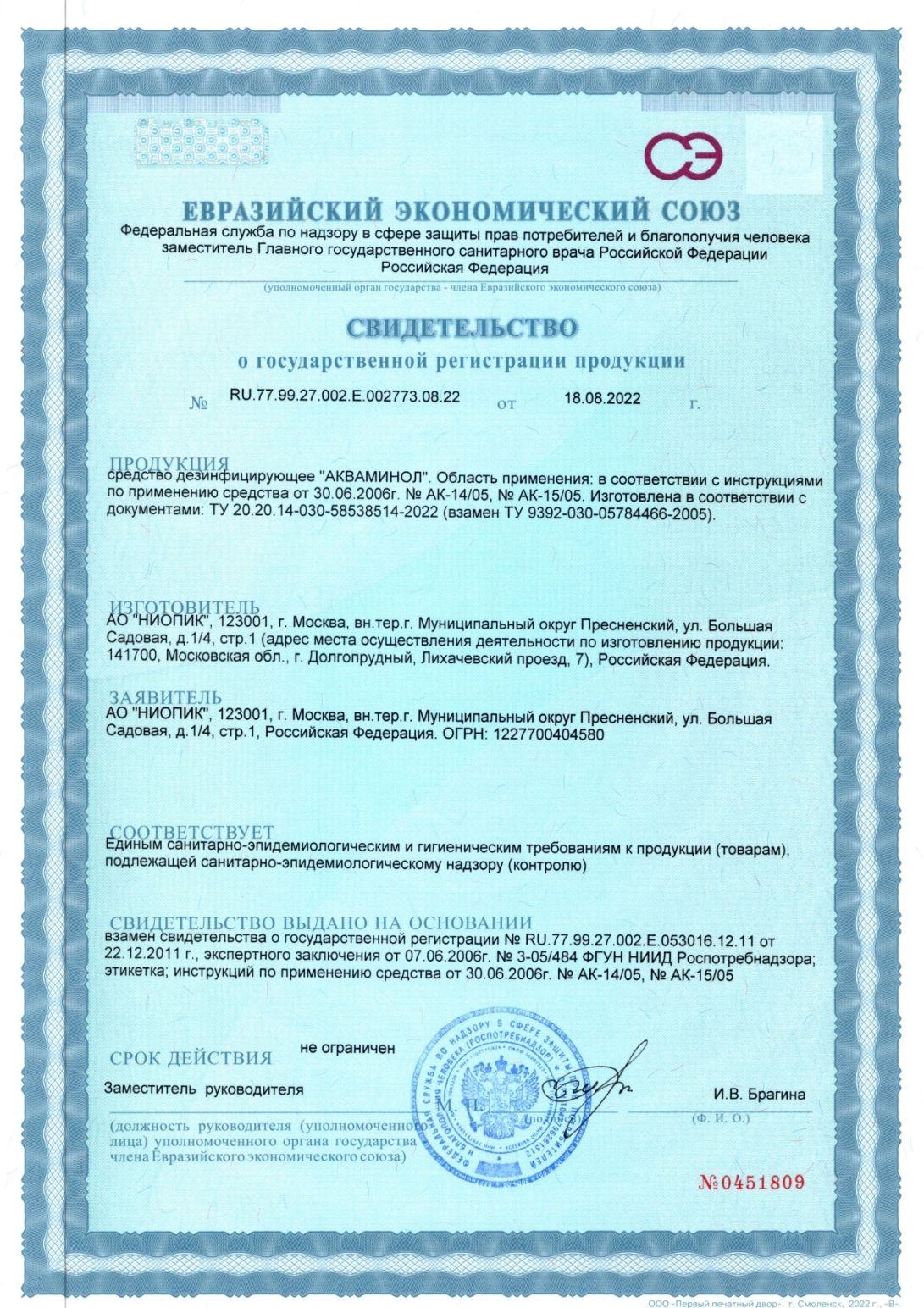 Срок годности – 3 лет.