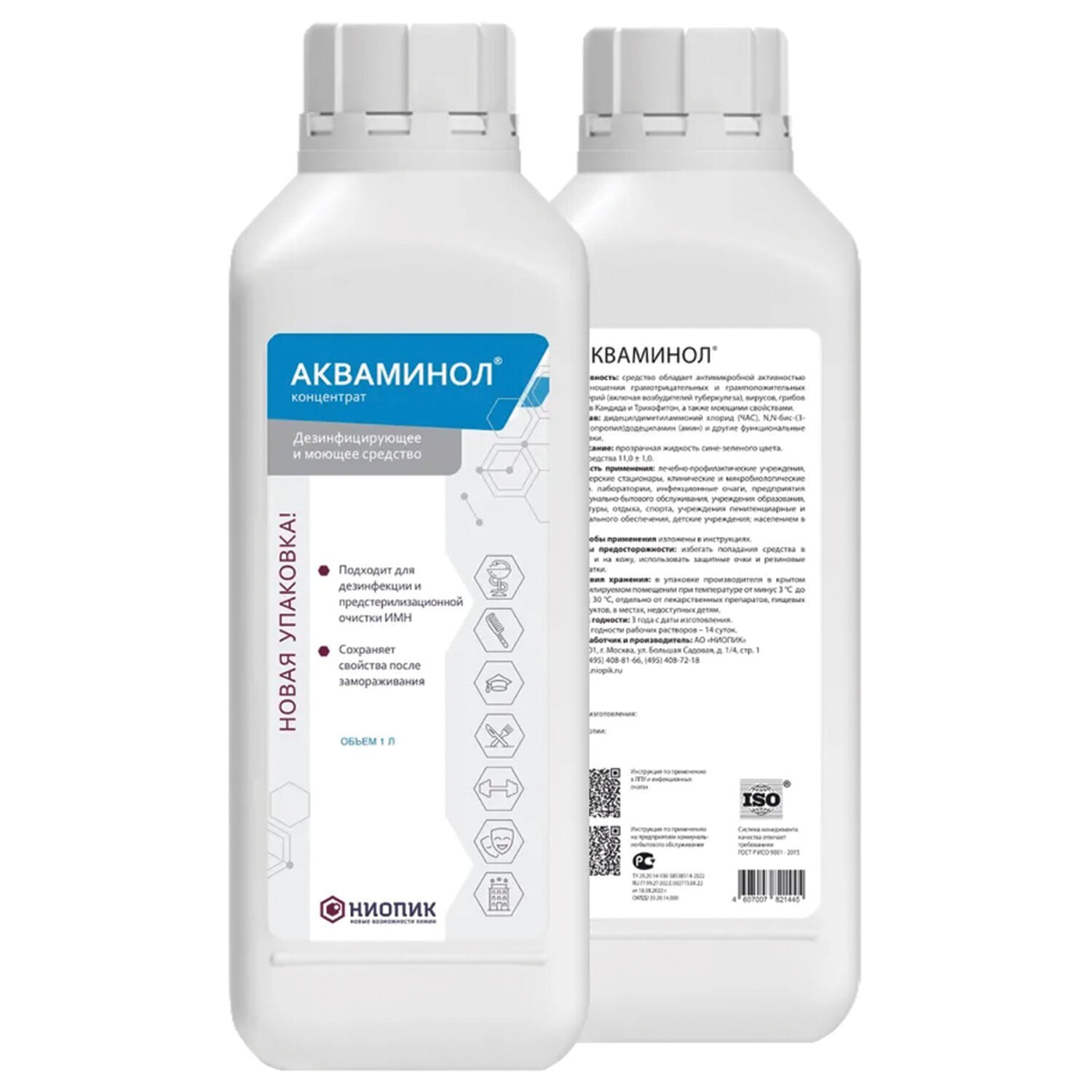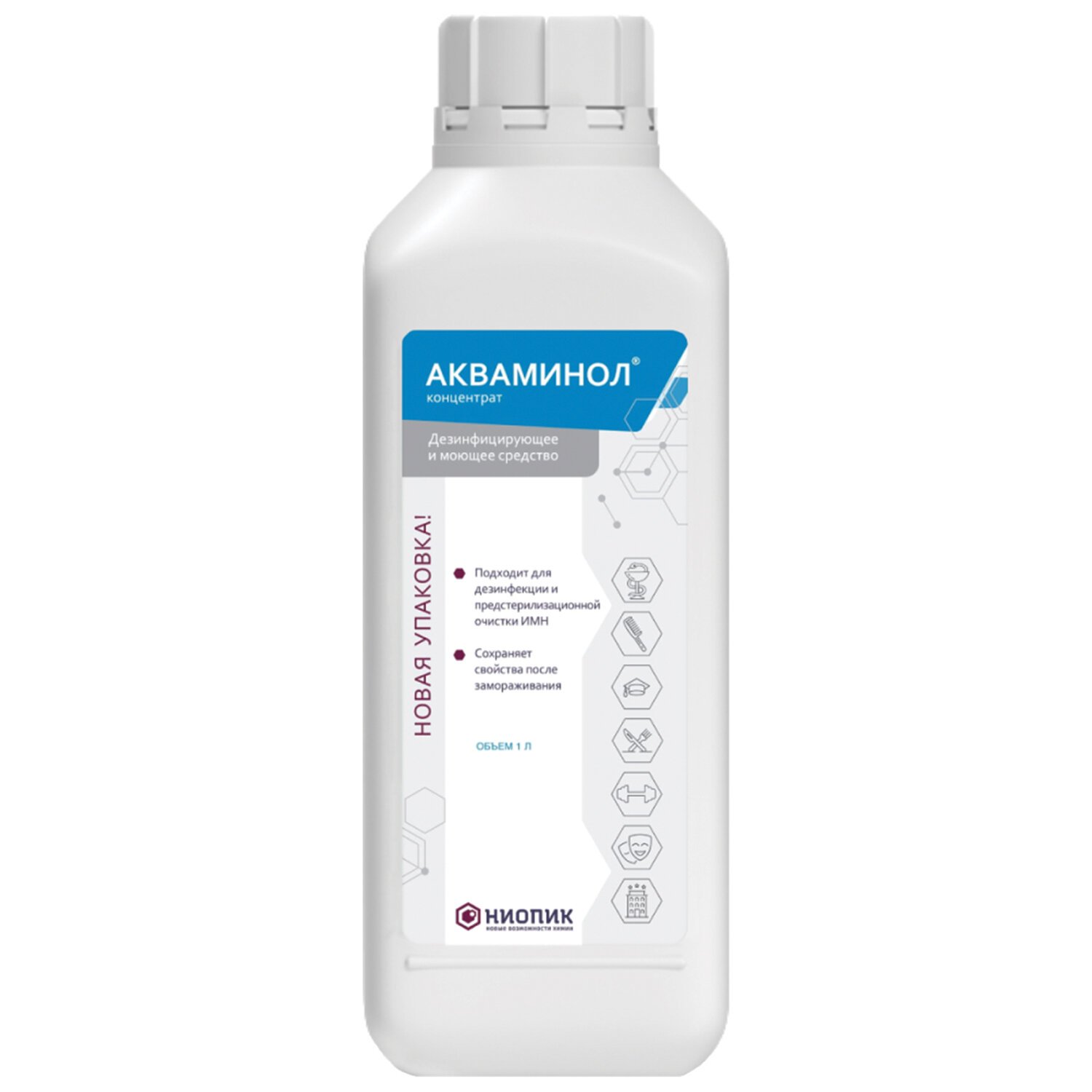 Универсальное безальдегидное дезинфицирующее средство АКВАМИНОЛ (концентрат) с моющими свойствами.