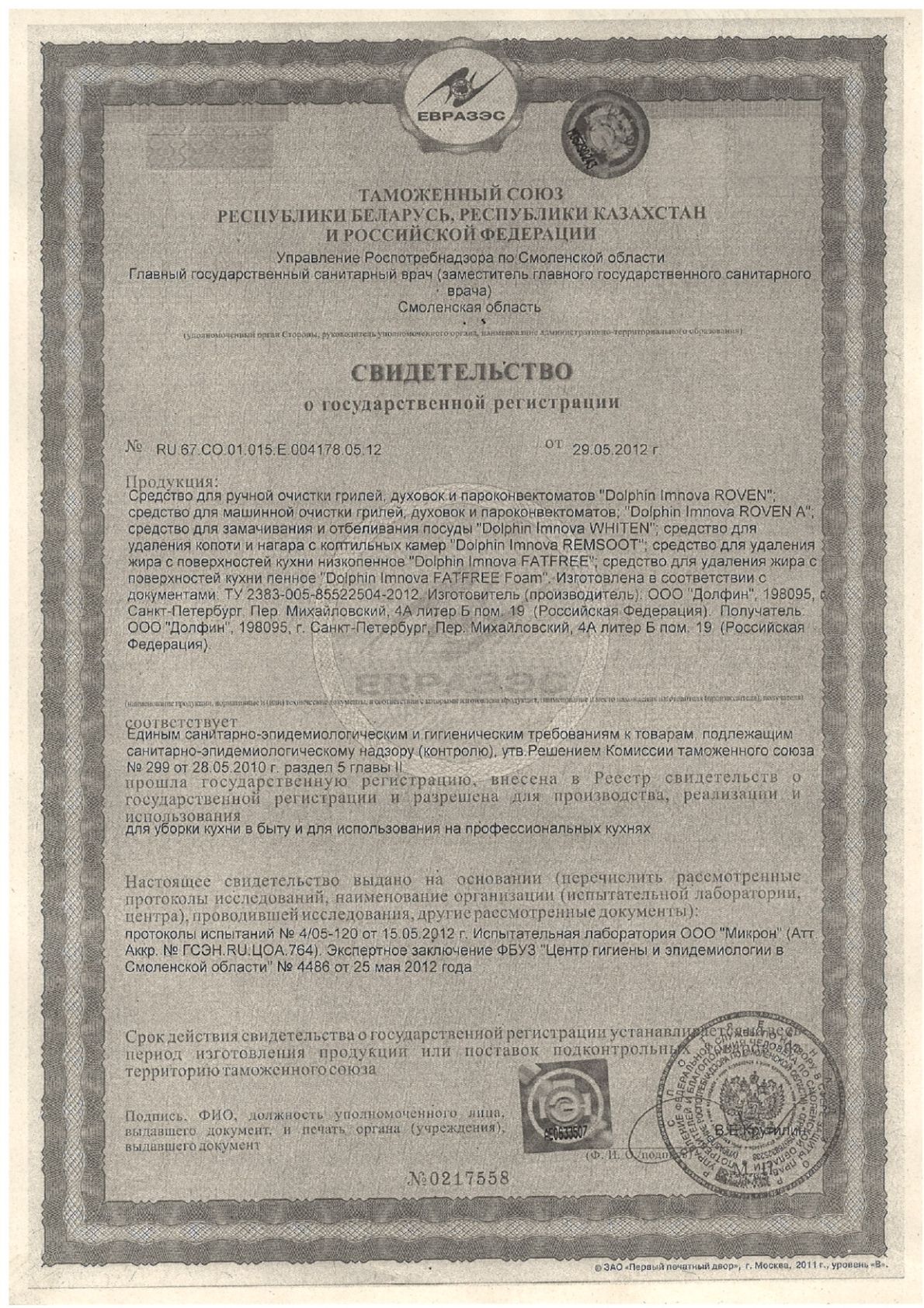 Dolphin Imnova Roven - сильнощелочное высокопенное средство без запаха для мытья пароконвектоматов и другого технологического оборудования.