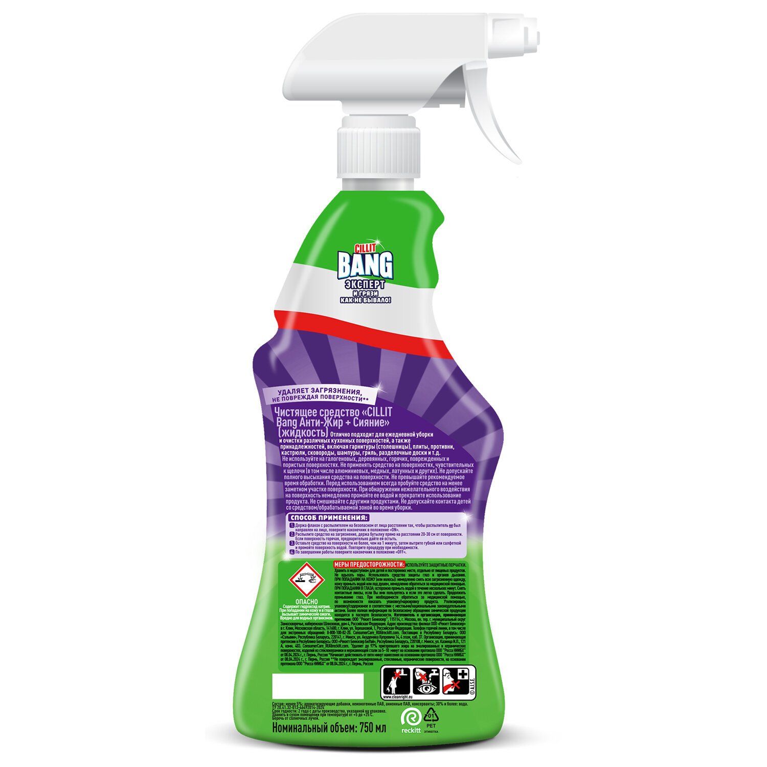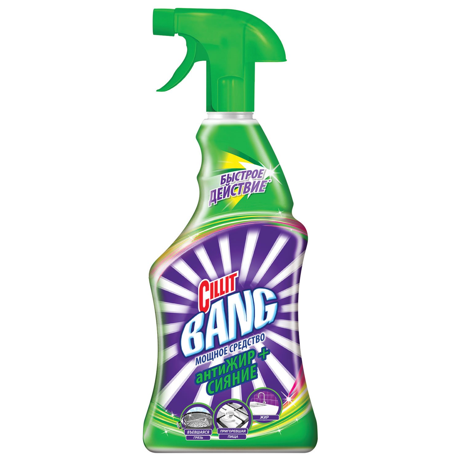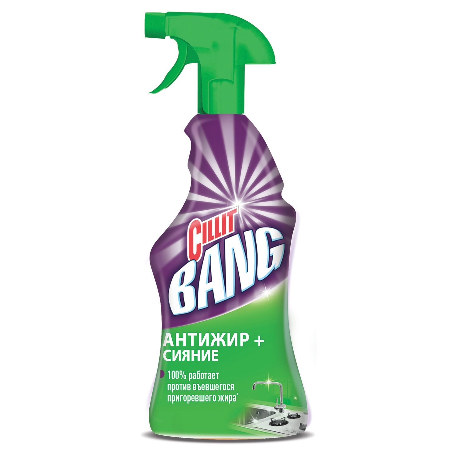 CILLIT BANG эффективно справляется с жирными и пригоревшими загрязнениями. Удаляет даже пригоревшие остатки жирной пищи и трудновыводимые загрязнения с кухонных столов и плит, кафеля, поверхностей из нержавеющей стали.