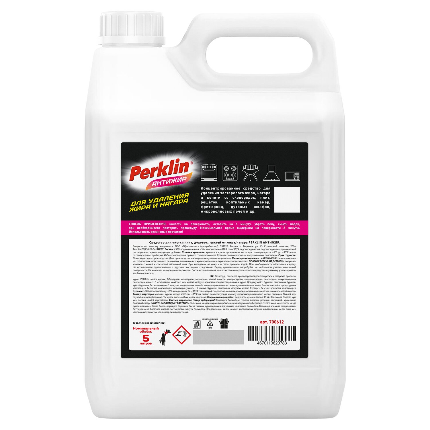 Средство для чистки плит, духовок, грилей от жира/нагара PERKLIN АНТИЖИР 5л,ХХХХХХ