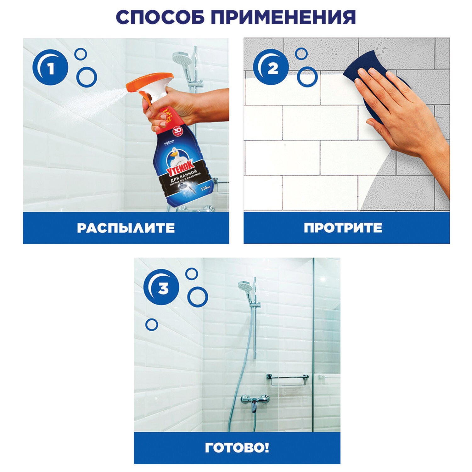 Способ применения: поверните носик распылителя в положение «ON». Нанесите средство на поверхность, нажимая на курок. Протрите загрязненную поверхность с помощью губки и через 2-5 минут смойте водой. Перед первым применением протестируйте на незаметном участке поверхности.