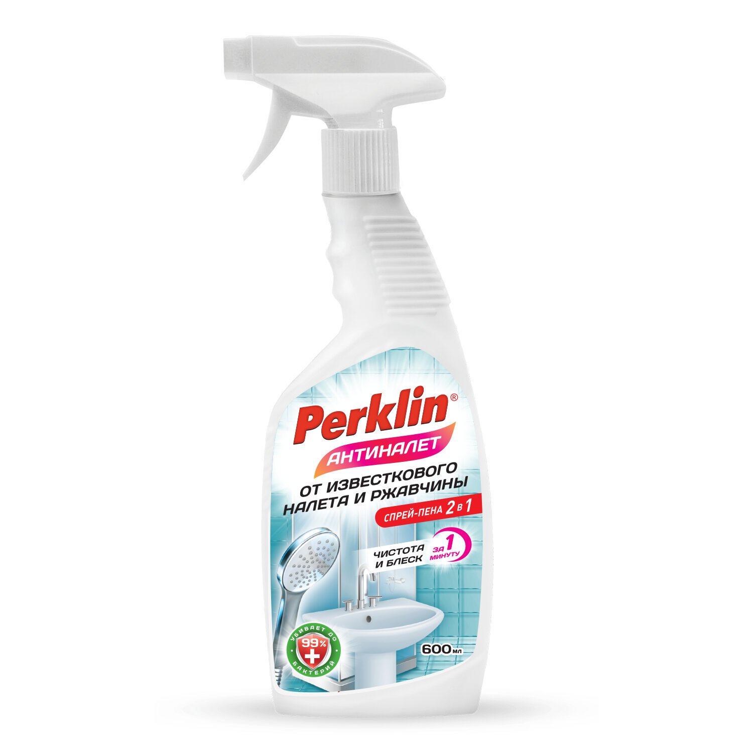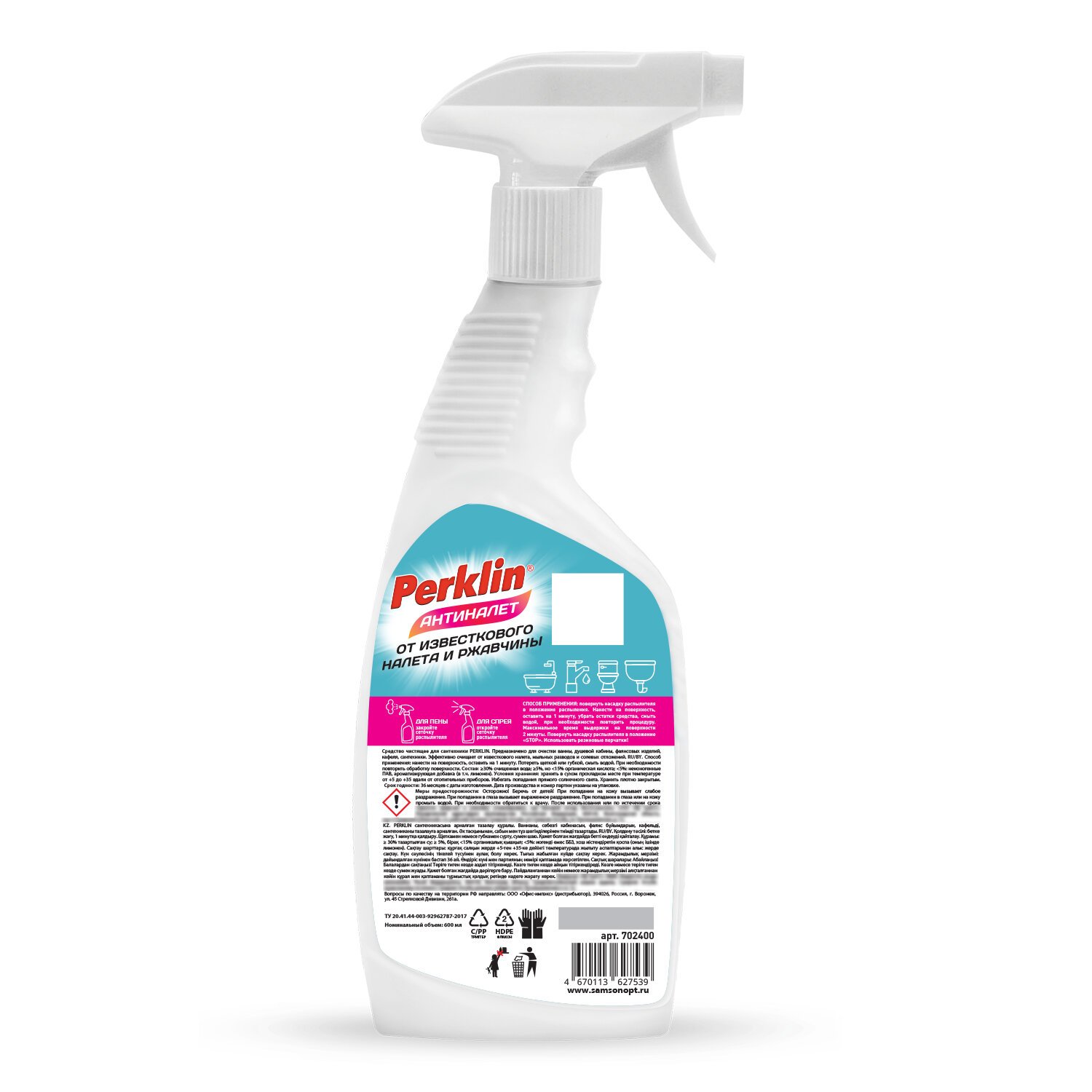 Универсальное моющее средство PERKLIN АНТИНАЛЕТ на основе лимонной кислоты для ванной комнаты и кухни. Подходит для чистки ванны, душевой кабины, унитаза, фаянсовых изделий, кафеля, сантехники, от известкового налета, подтеков ржавчины, мыльных разводов, водного камня и солевых отложений. Рекомендовано для акриловых ванн. Эффективно и при этом бережно удаляет сложные и застарелые загрязнения. Придает поверхности чистоту и блеск, сохраняя эффект на несколько дней. Спрей эффективен для очистки поверхностей, устойчивых к кислотам.