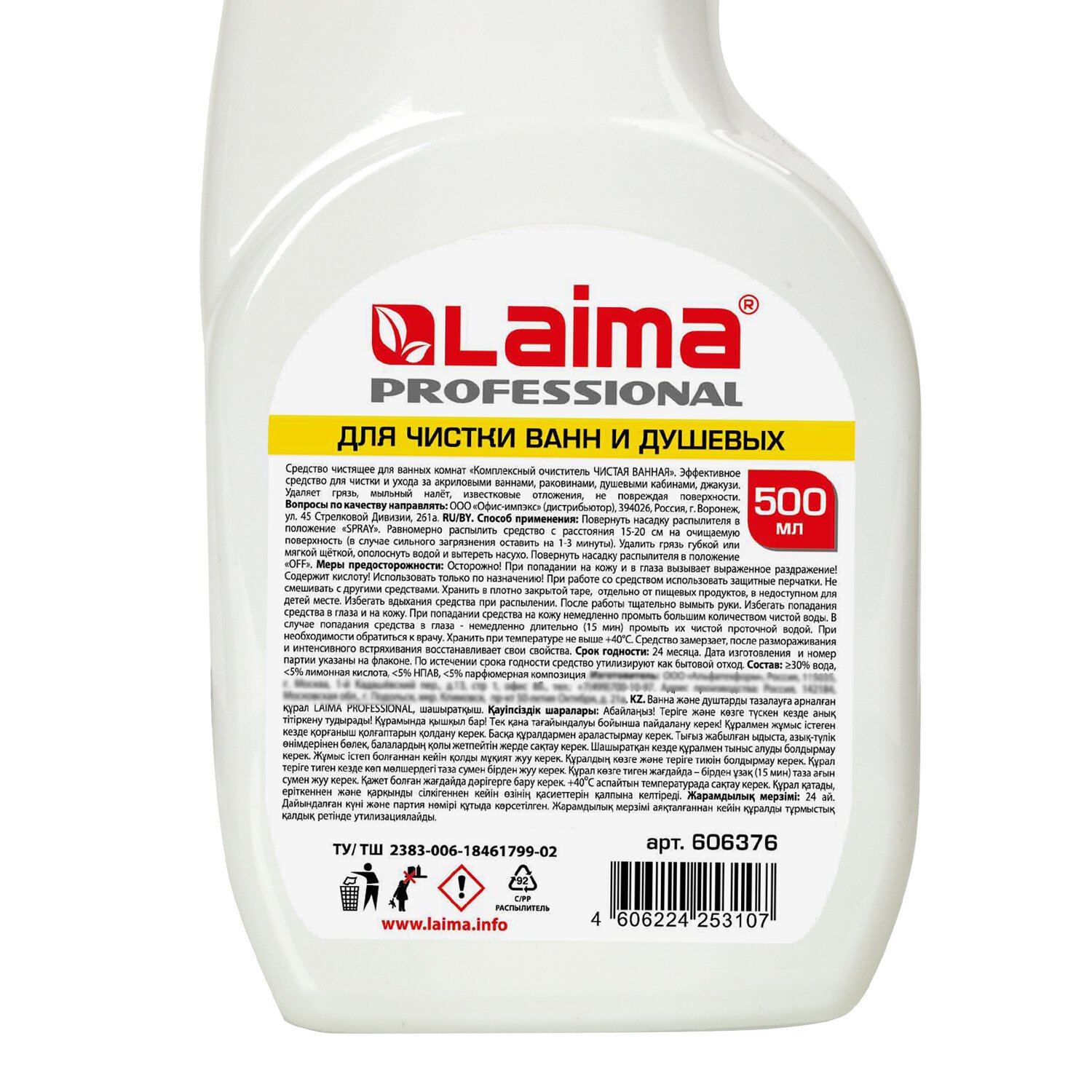 Средство для чистки ванн и душевых 500 мл LAIMA PROFESSIONAL, распылитель, 606376