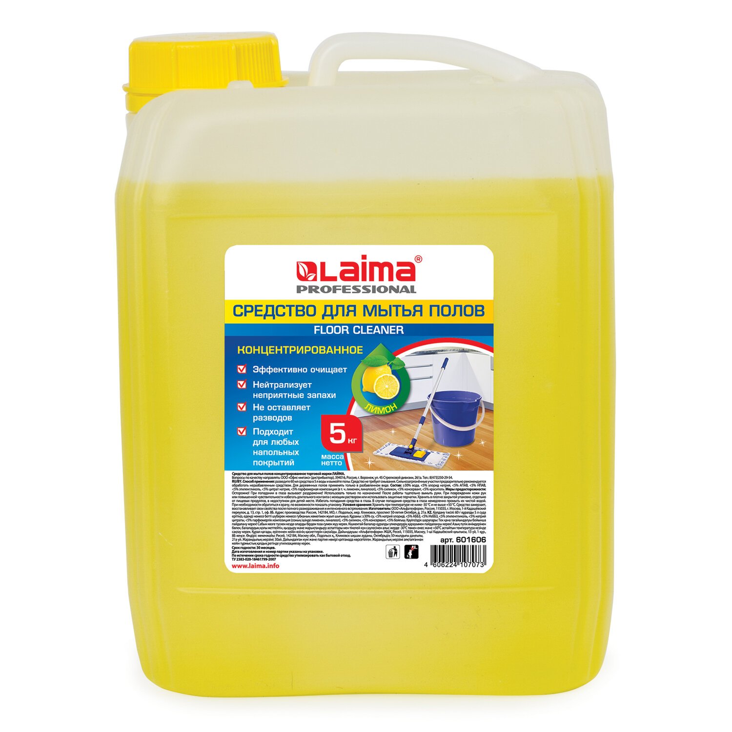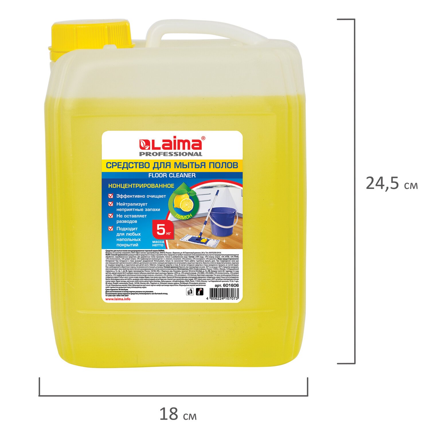 Средство для мытья пола 5 кг, LAIMA PROFESSIONAL концентрат, "Лимон", 601606