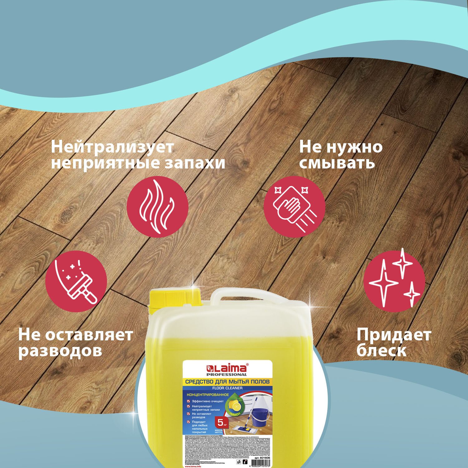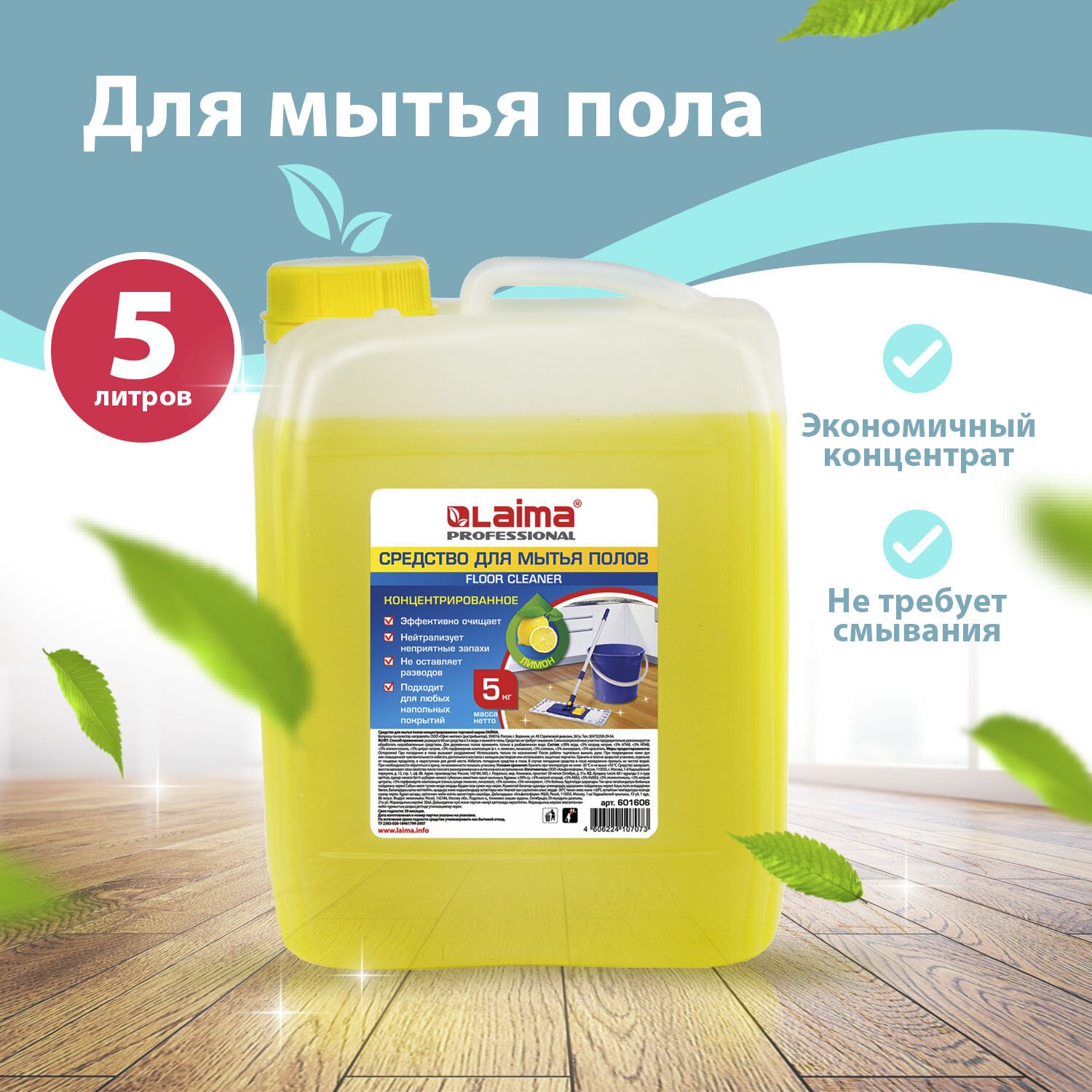 Средство для мытья пола 5 кг ЛАЙМА PROFESSIONAL концентрат, "Лимон", 880281