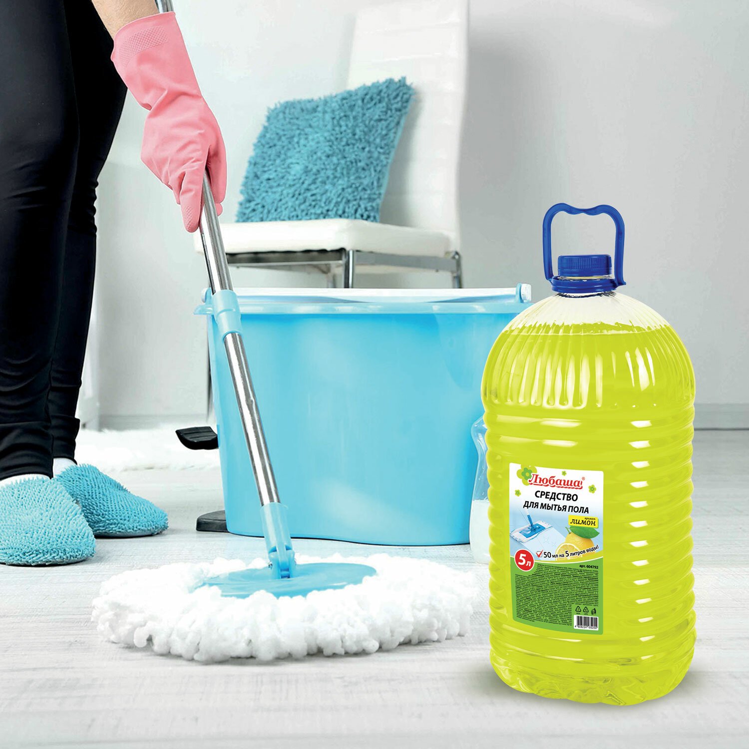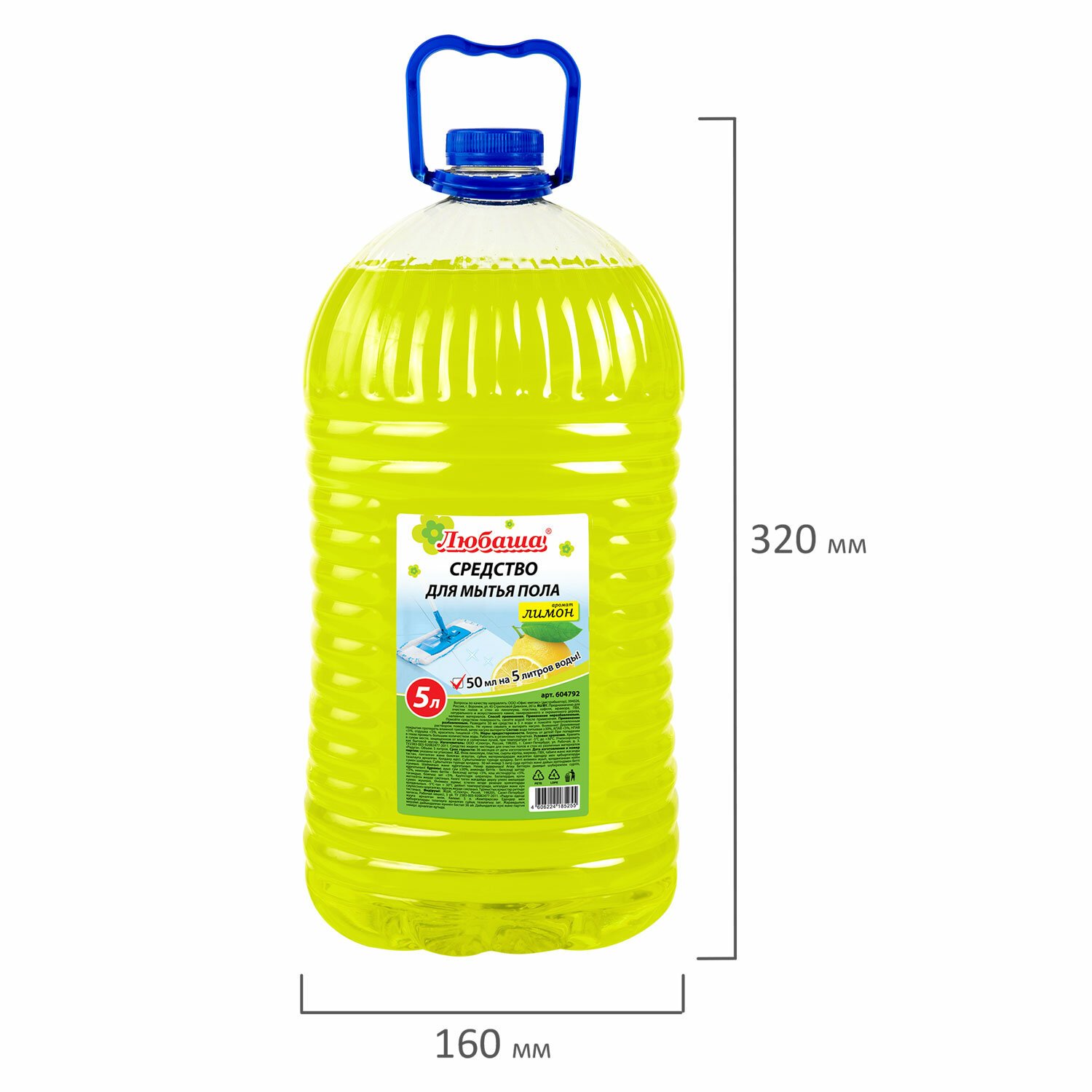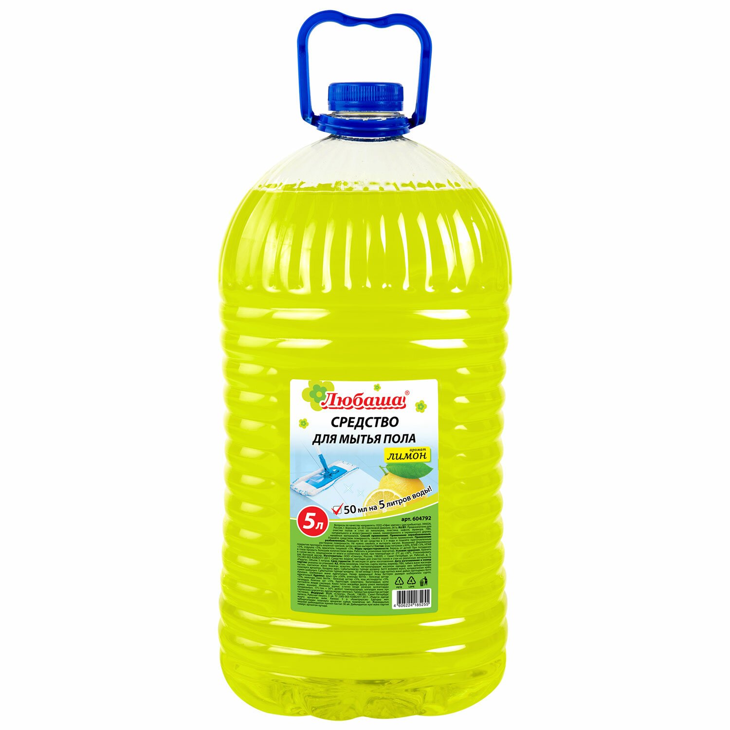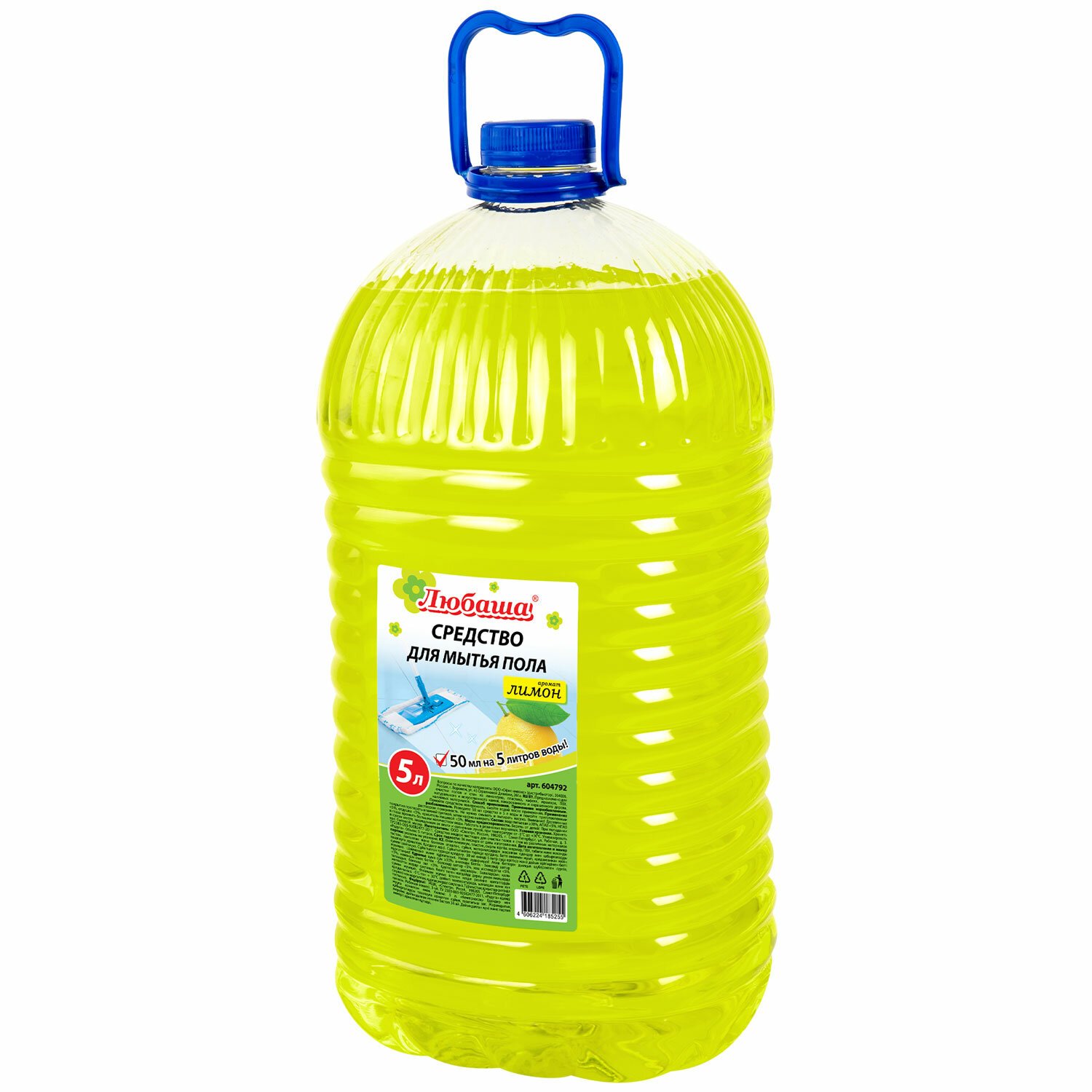 Средство для мытья пола 5 л, ЛЮБАША "Лимон", ПЭТ, 604792
