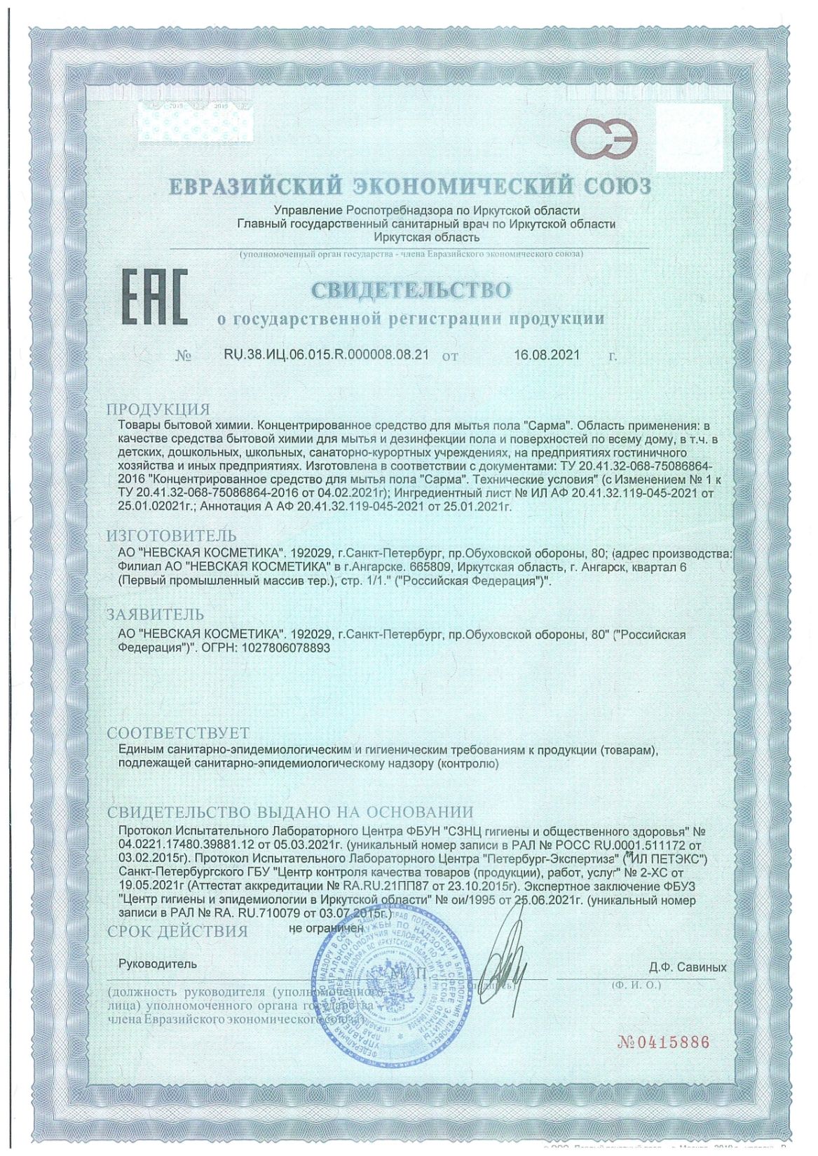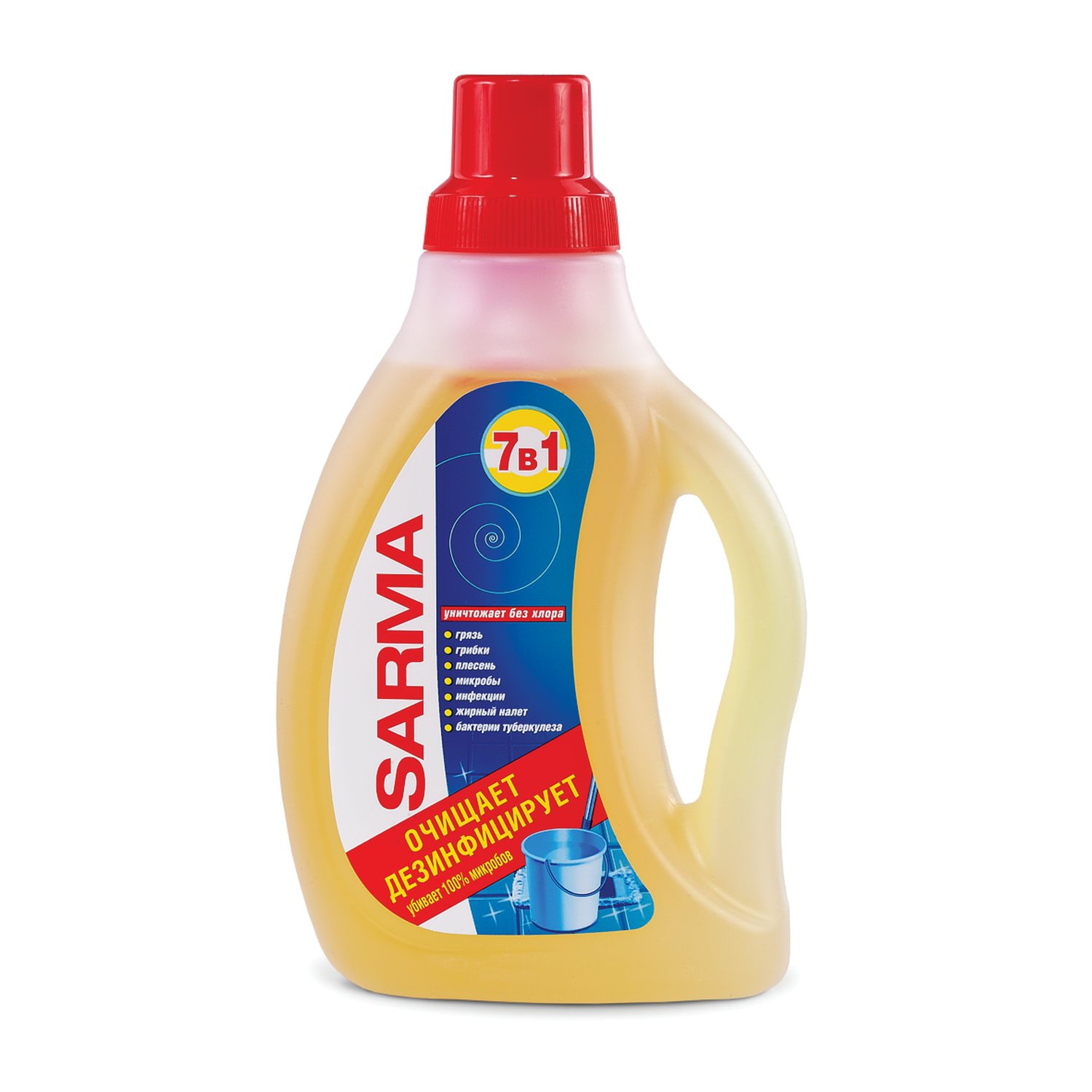 Средство для мытья пола дезинфицирующее 750 мл SARMA "Лимон", убивает микробы, концентрат, 90887