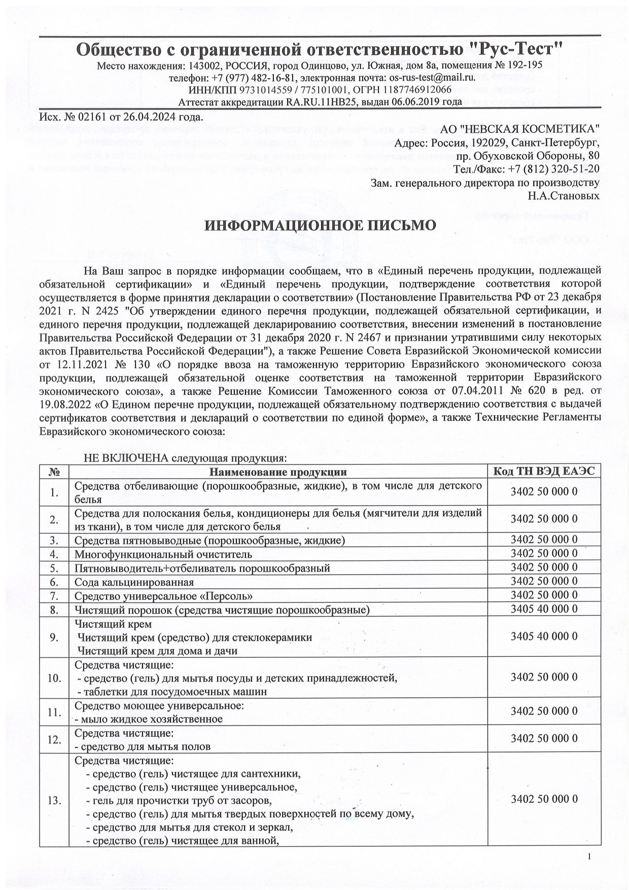 Соответствует: