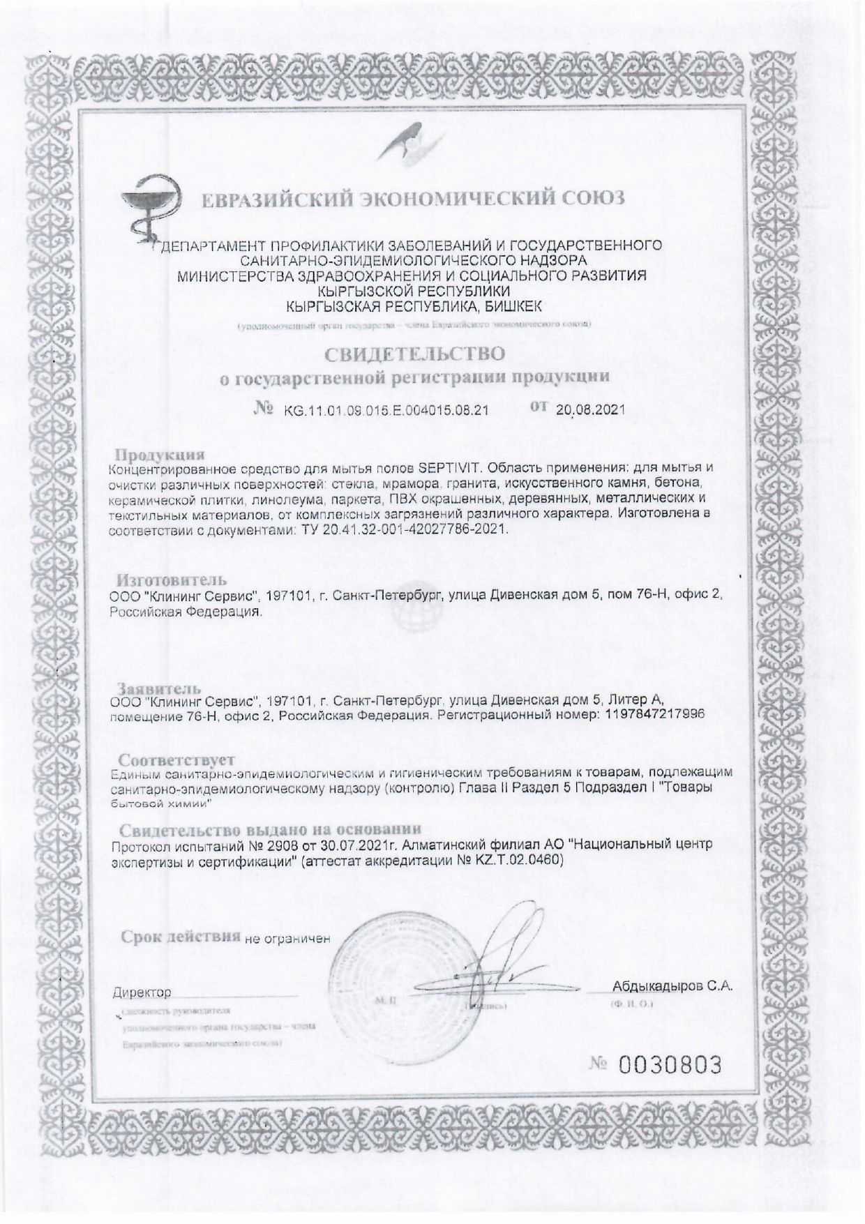 Способ применения: растворить 40-50 мл средства на 6-8 л теплой воды, помыть полы и другие поверхности. Не требует смывания.