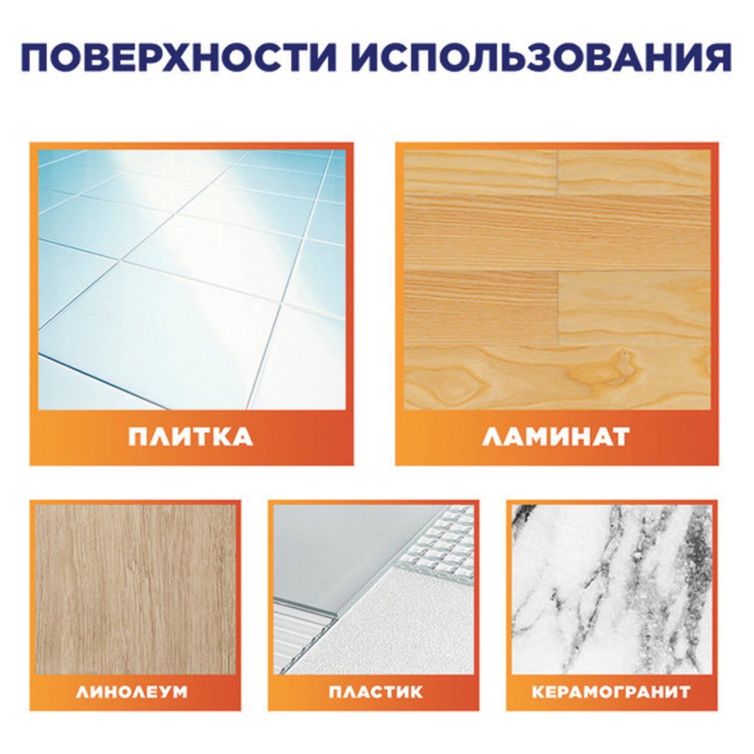 Подходит для очищения и дезинфекции* напольных покрытий (плитка, ламинат, линолеум, пластик, керамогранит), плинтусов, раковин и других поверхностей. Идеальная чистота, свежесть и приятный аромат во всем доме.