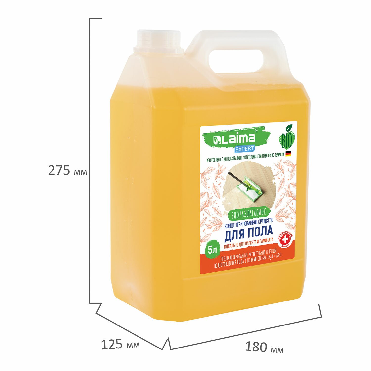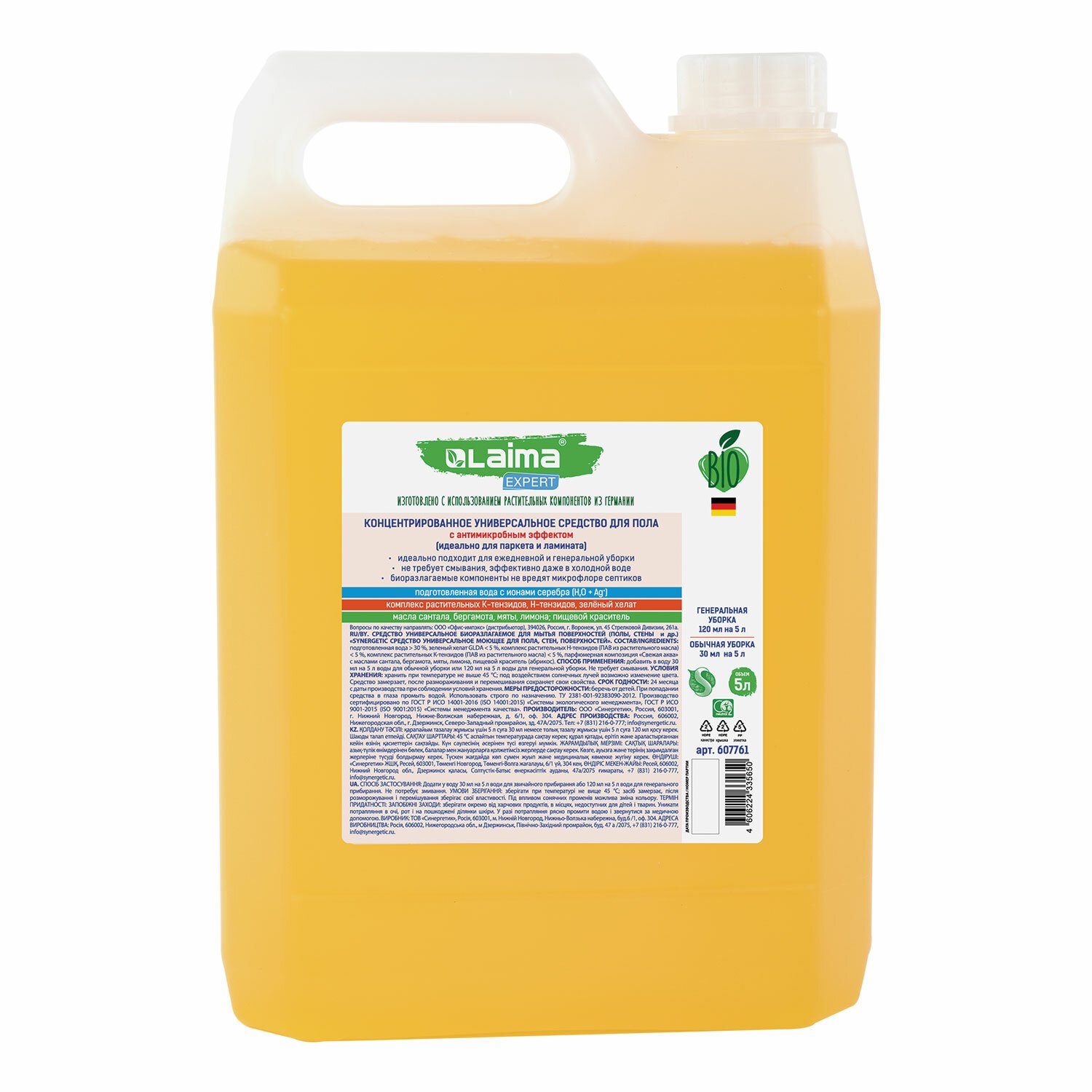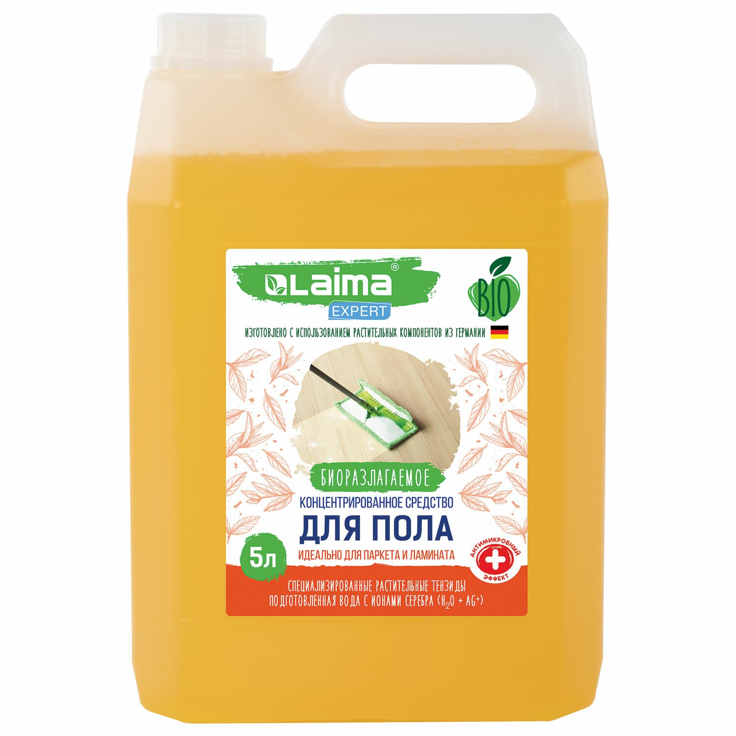 Средство для мытья пола, стен и поверхностей, c дезинфекцией, биоразлагаемое, 5 л, LAIMA EXPERT, 607761