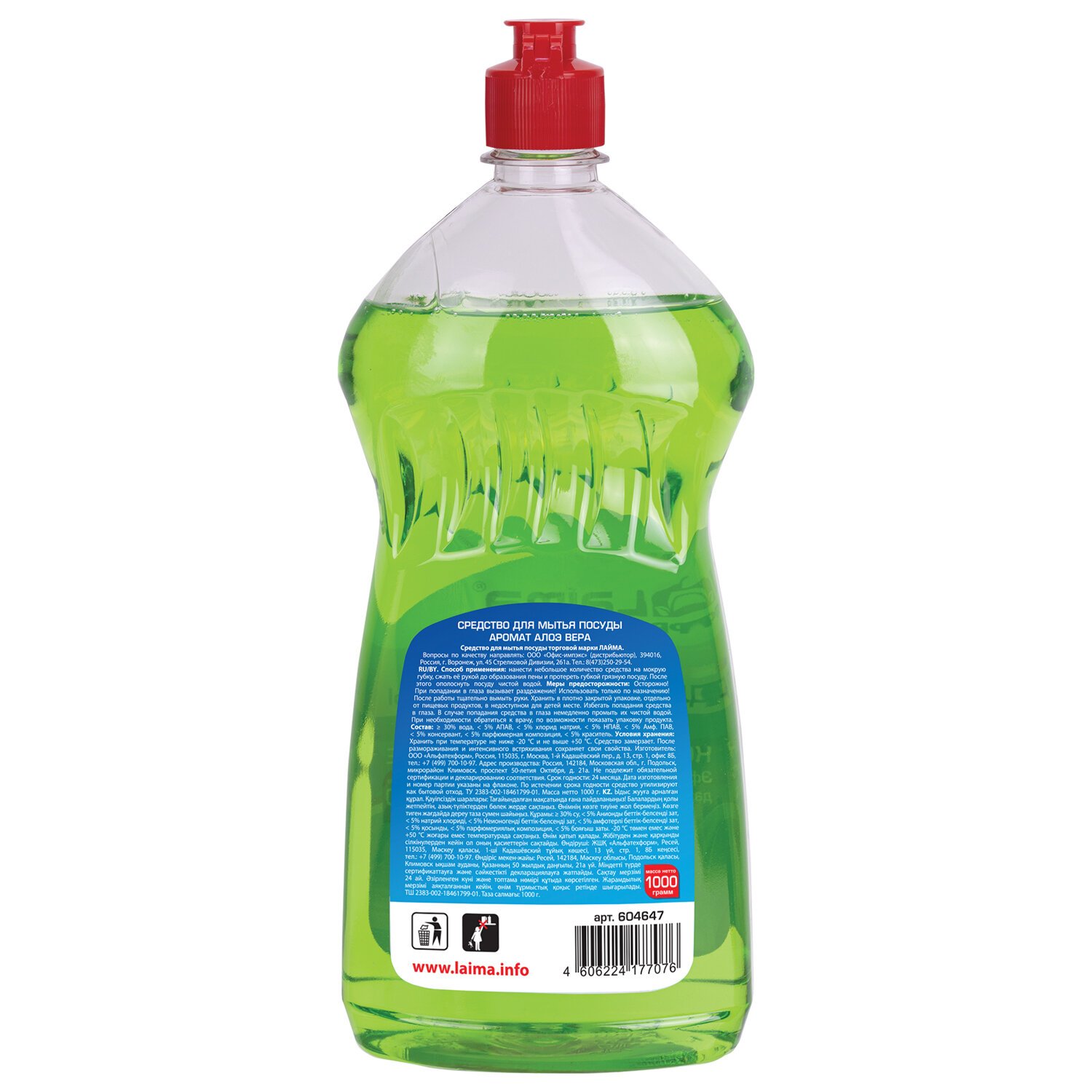 Средство для мытья посуды 1 кг, LAIMA PROFESSIONAL, концентрат, "Алоэ Вера", 604647