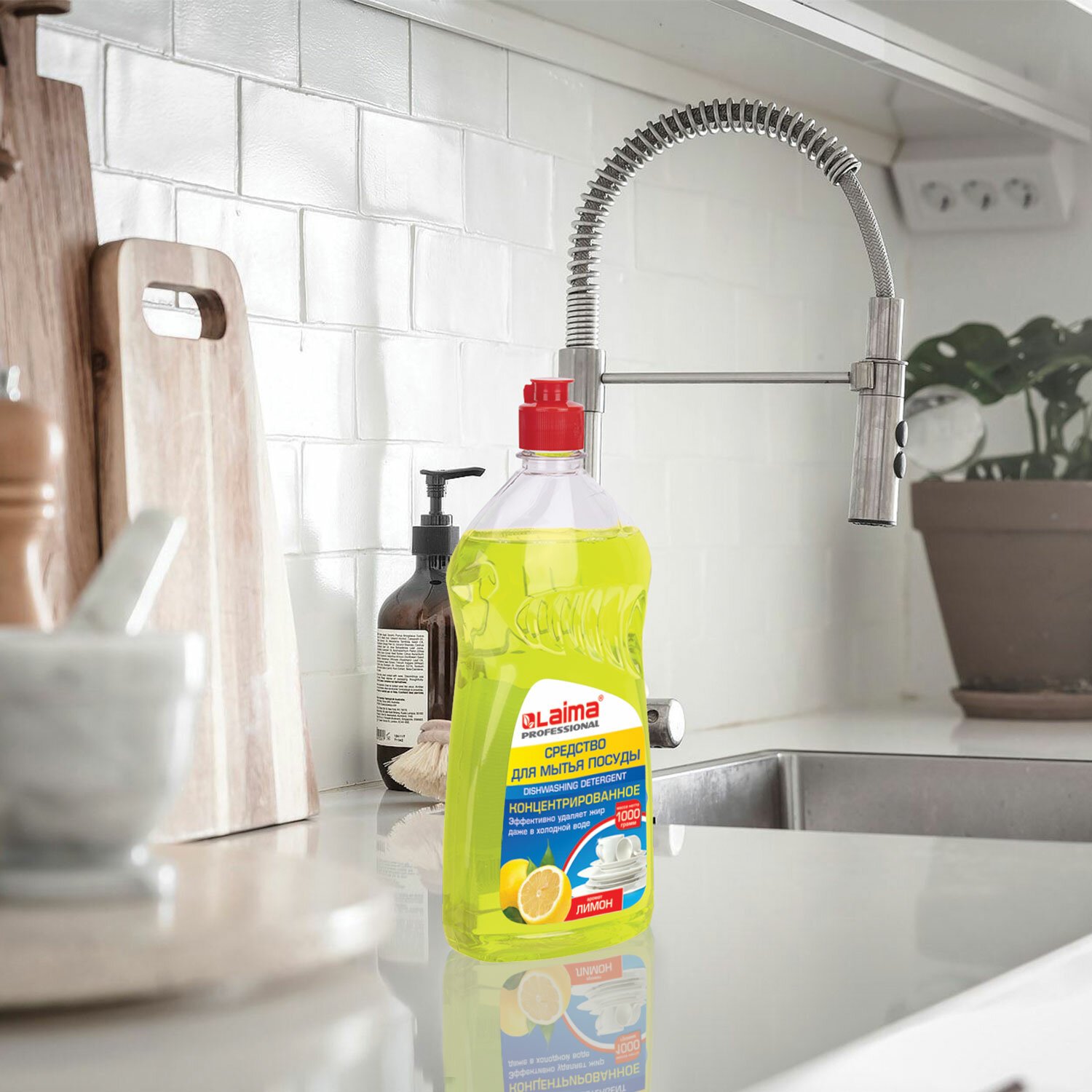 Средство для мытья посуды LAIMA PROFESSIONAL эффективно удаляет с посуды все загрязнения даже при мытье в холодной воде.