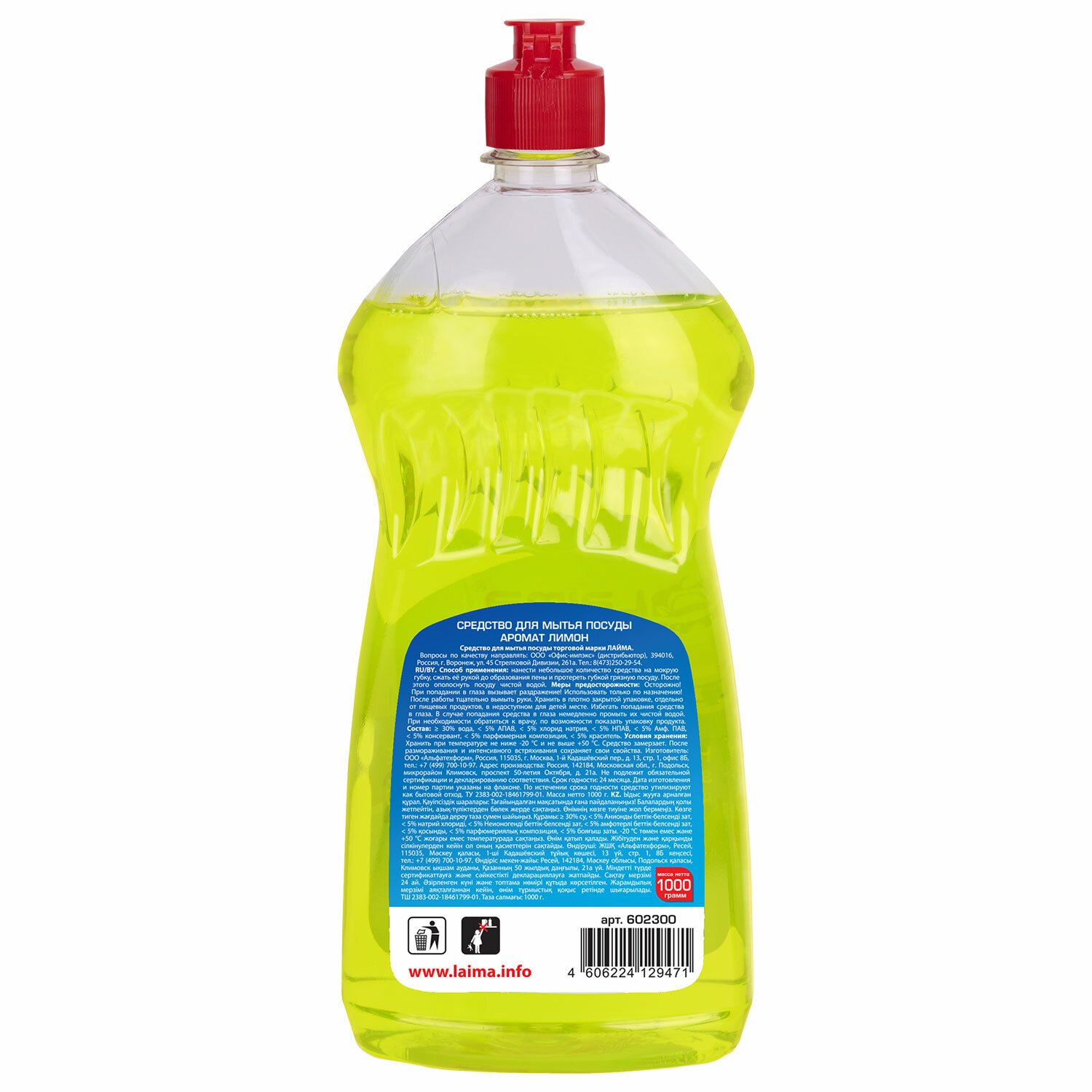 Средство для мытья посуды 1л ПЕРВОЦЕН "Лимон", РЕНЕССАНС КОСМЕТИК, МИНПРОМОРГ, ш/к 36, 3246