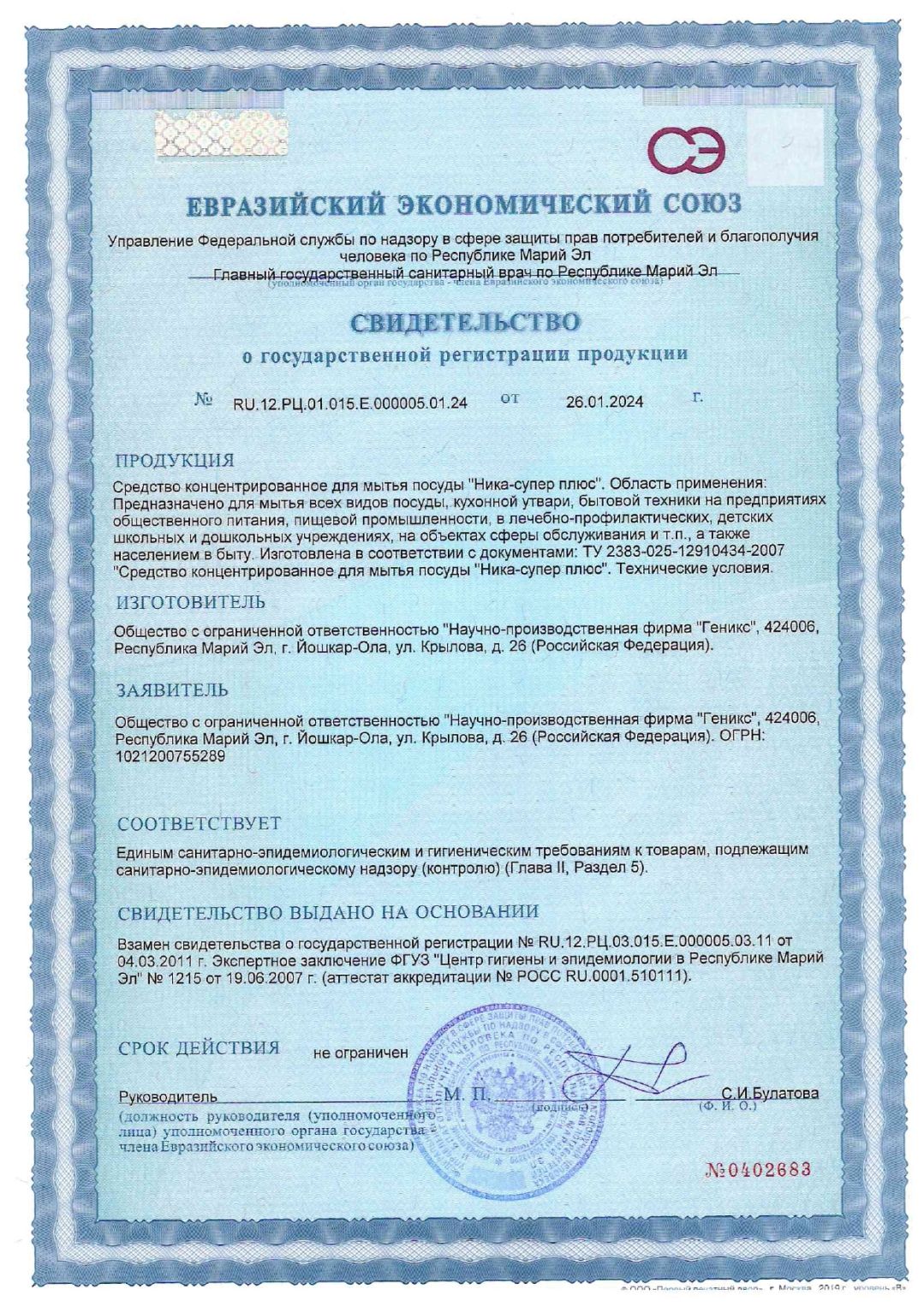 Средство для мытья посуды 1 кг, НИКА "Супер Плюс", концентрат