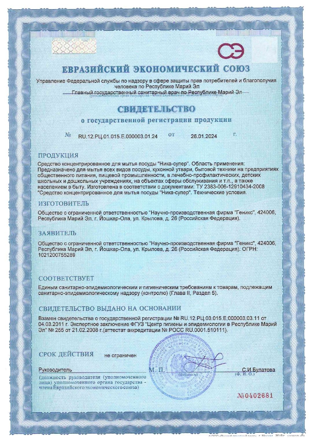 Не содержит хлор.
