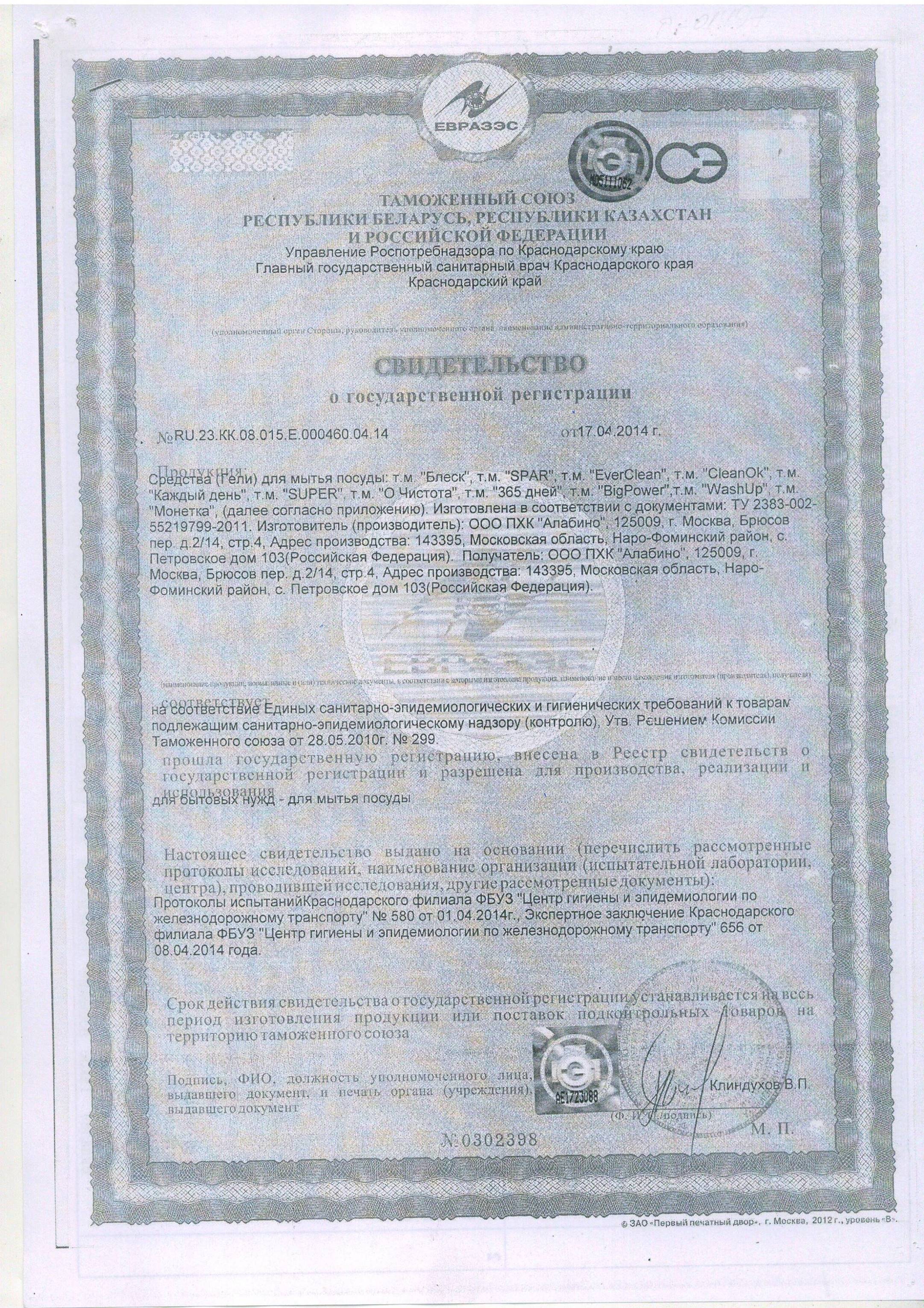 Рекомендации по применению: нанести небольшое количество средства на влажную губку или на посуду или растворить 5 мл в литре воды. Добавлять средство по необходимости. Прополоскать посуду в чистой воде. Использовать только по назначению.