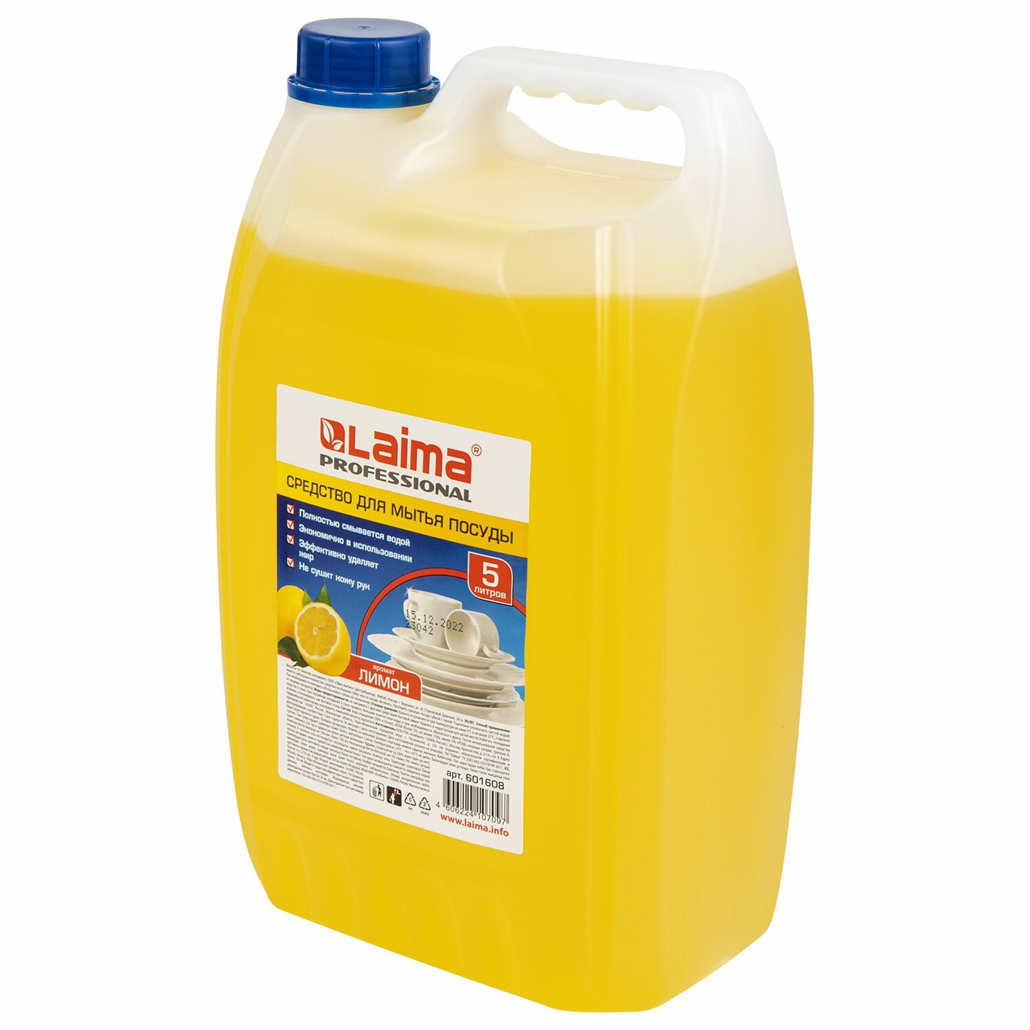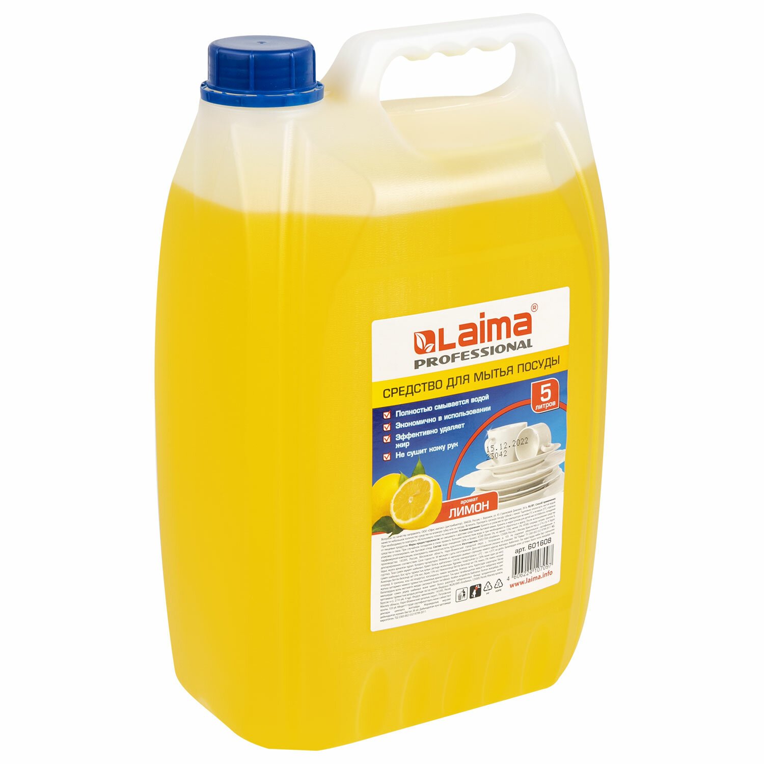 Средство для мытья посуды 5 л, LAIMA PROFESSIONAL, концентрат, "Лимон", 601608